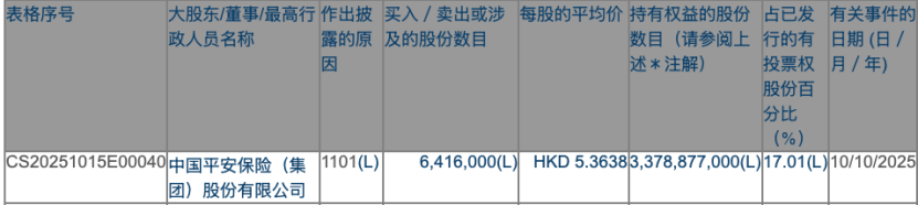 10月10日,中国平安买入641.6万股邮储银行H股,增持完成后,中国平安持有的邮储银行H股数量增至33.79亿股,占该行H股比例达到17%。