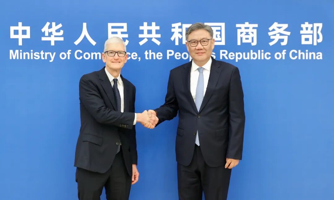 10月16日,商务部部长王文涛会见美国苹果公司首席执行官库克。双方就中美经贸关系、苹果公司在华业务发展等进行了交流。
