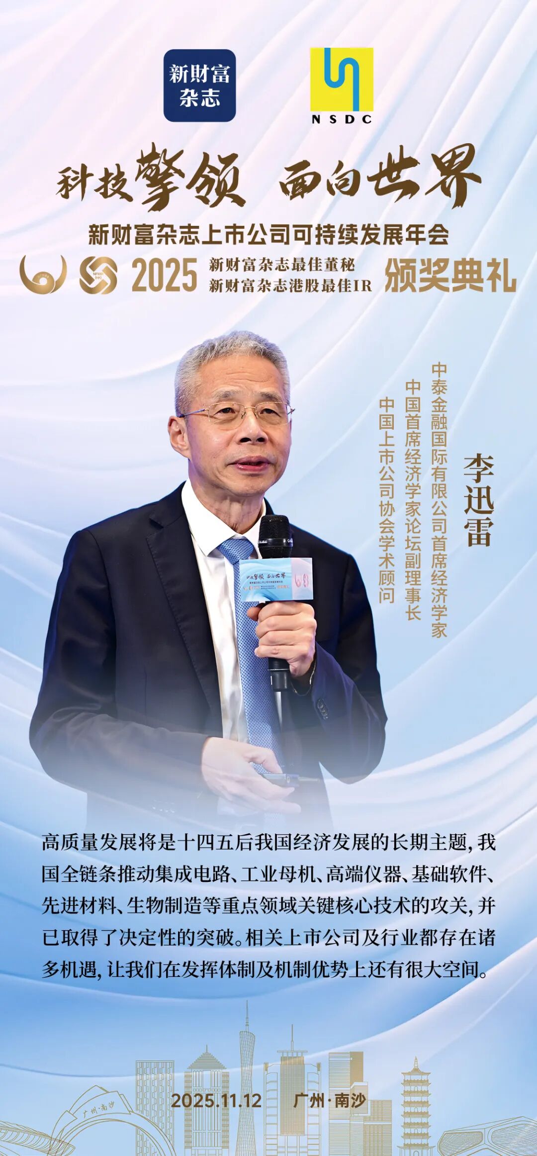 2025年11月12日,备受资本市场瞩目的“2025新财富杂志上市公司可持续发展年会暨最佳董秘、港股最佳IR颁奖典礼”在广州南沙隆重举办。