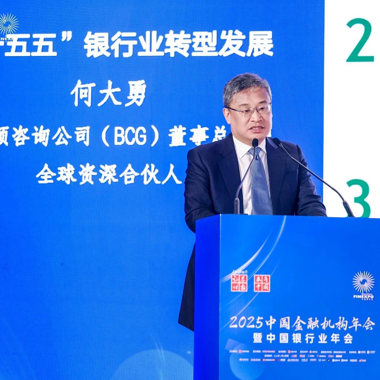 第十九届深圳国际金融博览会暨2025中国金融机构年会近日在深圳举行。在“中国银行业年会”分论坛上,波士顿咨询公司(BCG)董事总经理、全球资深合伙人何大勇发表题为《“十五五”银行业转型发展》的主题演讲。