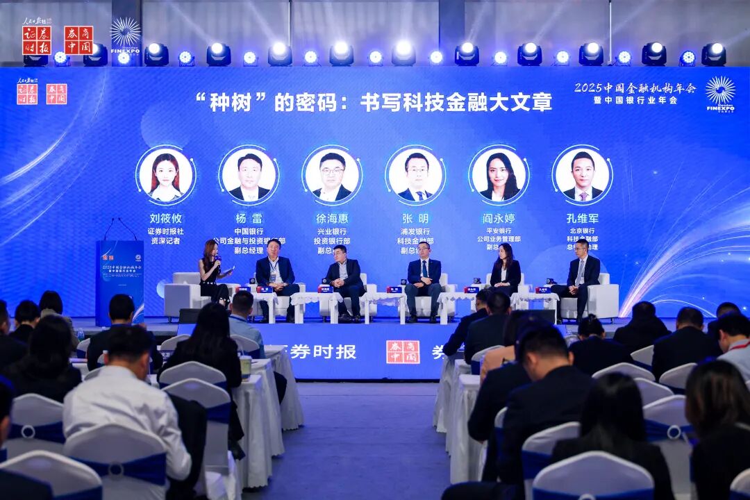 在证券时报社举办的2025中国金融机构年会暨中国银行业年会上,来自中国银行、兴业银行、浦发银行、平安银行、北京银行的嘉宾,以《“种树”的密码:书写科技金融大文章》为主题展开深度探讨。