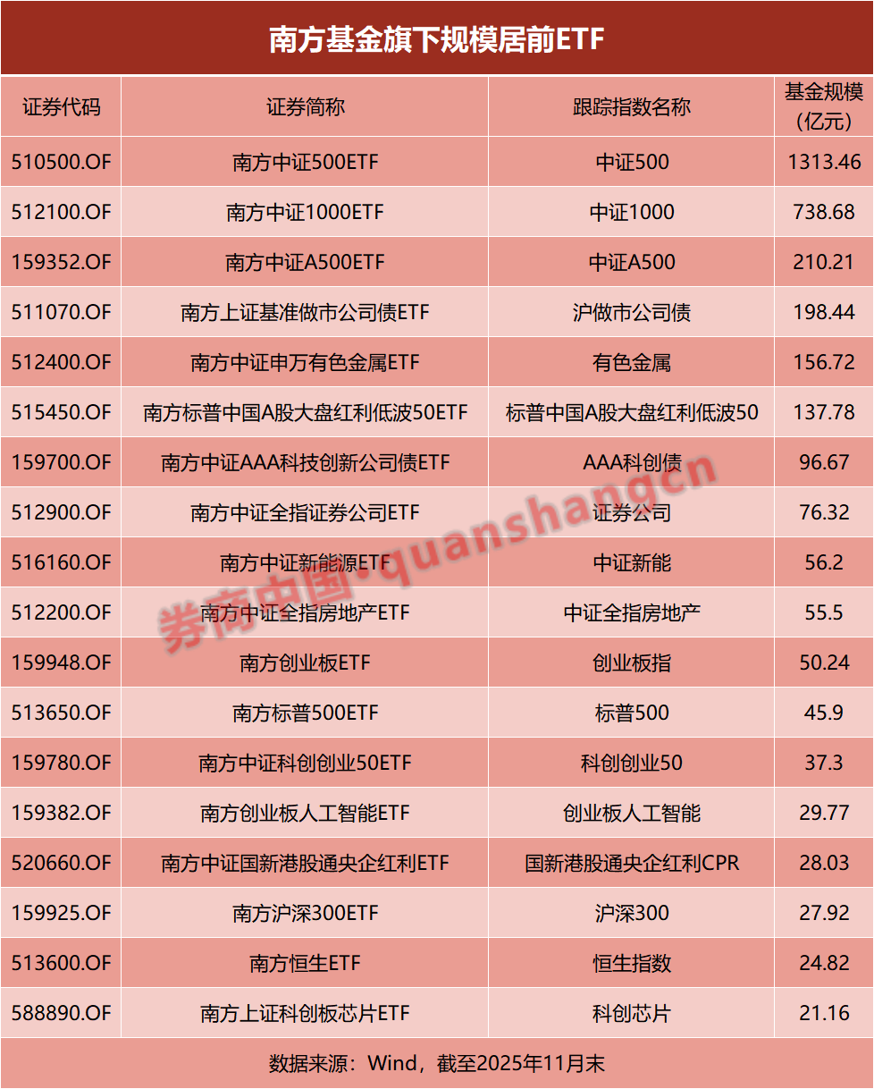 与此同时,南方基金在跨境与创新产品领域也持续发力。通过覆盖港股、美股及沙特等特色市场的跨境产品网络,为投资者提供了全球化配置工具;旗下还拥有多只“首批”“首只”产品,如首只中证1000ETF、首只有色金属ETF、首只新能源ETF、首批中证A500ETF、首批港股通央企红利ETF、首批沙特ETF等,不断拓展产品边界,为市场注入创新活力。