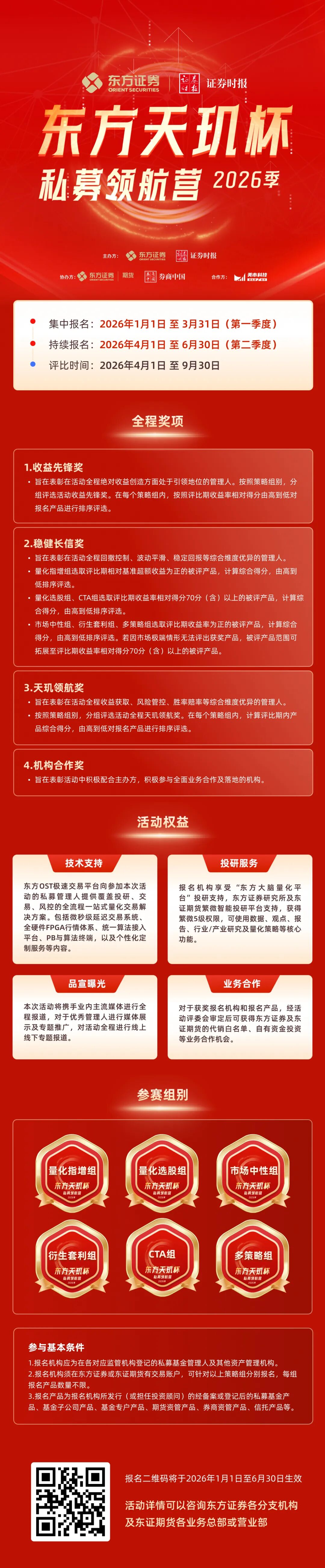 为发掘优秀私募基金管理人,搭建行业交流平台与生态圈,培育资管行业长期资本和耐心资本,东方证券依托自身在财富管理、期货交易、研究服务、金融科技等方面的优势资源,联合证券时报,于2026年1月1日正式启动 “东方天玑杯”私募领航营(2026季)。