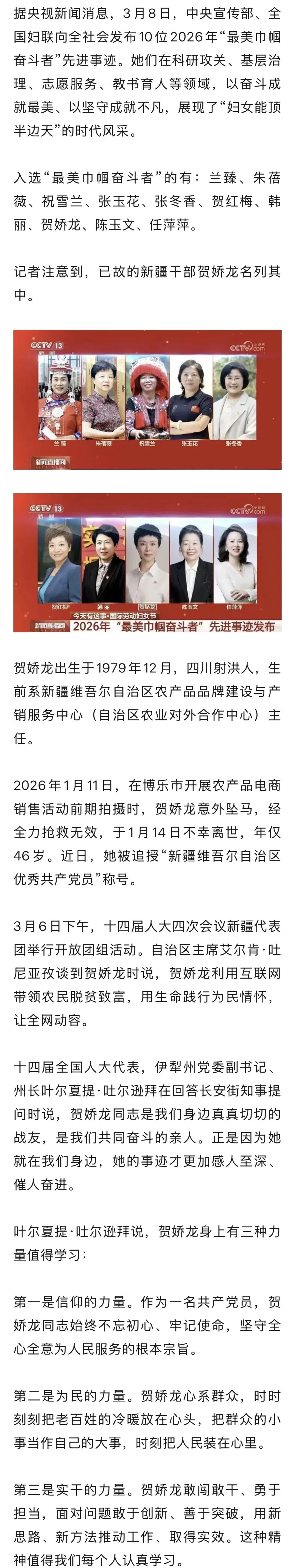 贺娇龙,入选“最美巾帼奋斗者”