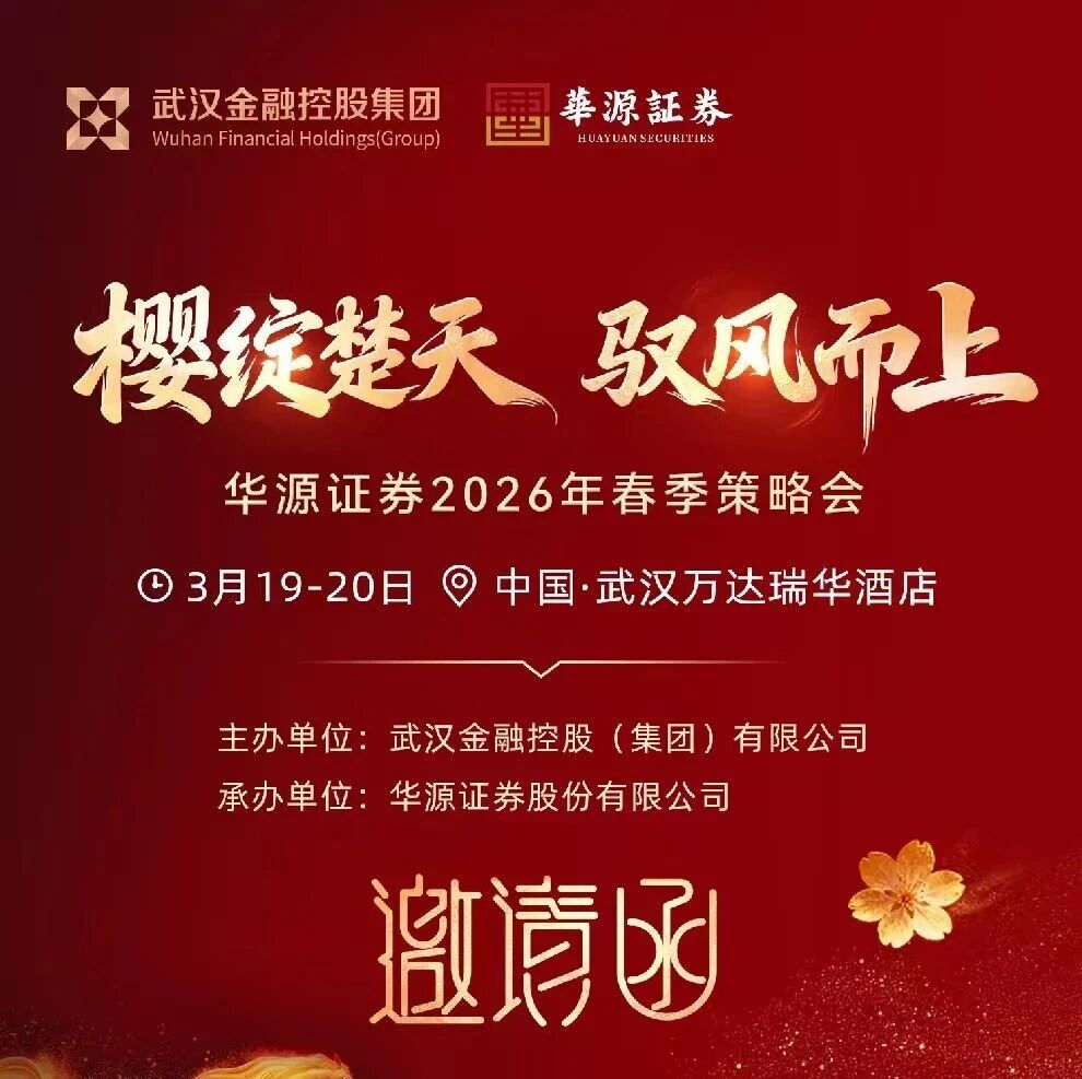 3月22日,2026武汉马拉松将鸣枪起跑,作为赛事官方赞助商和供应商,武汉金控集团与华源证券始终扎根江城、与城市同频共振,让“奔跑力量”与“金融赋能”深度融合,将金融国企的责任与担当融入城市发展脉络,于3月19日至20日在武汉联合主办“樱绽楚天 驭风而上”——华源证券2026年春季策略会,汇聚政、产、学、研各界精英,邀请众多行业领袖、知名专家学者、上市公司高管及资深投资人齐聚一堂,预计线上线下参会上市公司将超过500家,搭建产业链接桥梁,共同把脉宏观经济走势,探寻产业变革机遇,彰显智库担当。