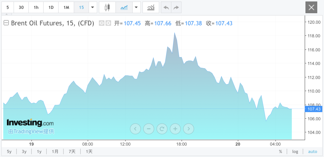 北京时间今日(3月20日)凌晨,国际油价直线跳水,WTI原油期货在美股尾盘转跌,此前一度大涨超5%;布伦特原油期货涨幅收窄至1.18%,此前一度大涨近11%。