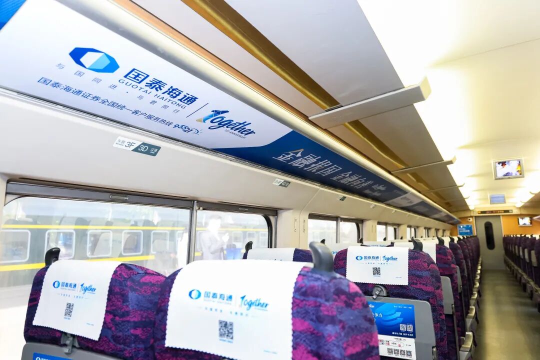 华铁传媒向国泰海通赠送高铁列车纪念模型。本次国泰海通冠名的高铁列车,运行线路覆盖上海、杭州、深圳、南京、青岛、福州等百余座城市,连接长三角、粤港澳大湾区等重要区域,通过车身、车厢、语音播报及站点刷屏机等多维载体,将企业文化、服务理念转化为旅途温情陪伴,让国泰海通品牌形象伴随高铁网络通达四方、深入人心。