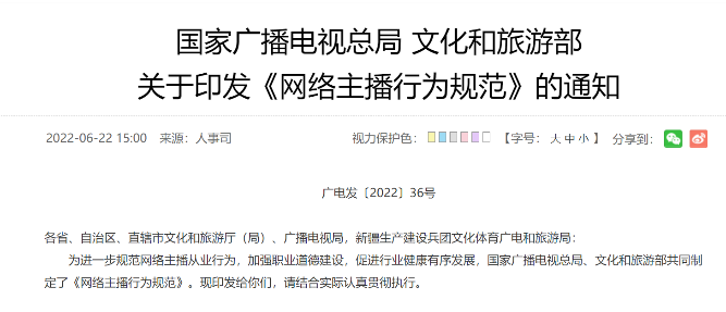 6月22日,国家广播电视总局、文化和旅游部联合发布了《网络主播行为规范》。新规第十三条称:网络主播应当自觉加强学习,掌握从事主播工作所必需的知识和技能。对于需要较高专业水平(如医疗卫生、财经金融、法律、教育)的直播内容,主播应取得相应执业资质,并向直播平台进行执业资质报备,直播平台应对主播进行资质审核及备案。