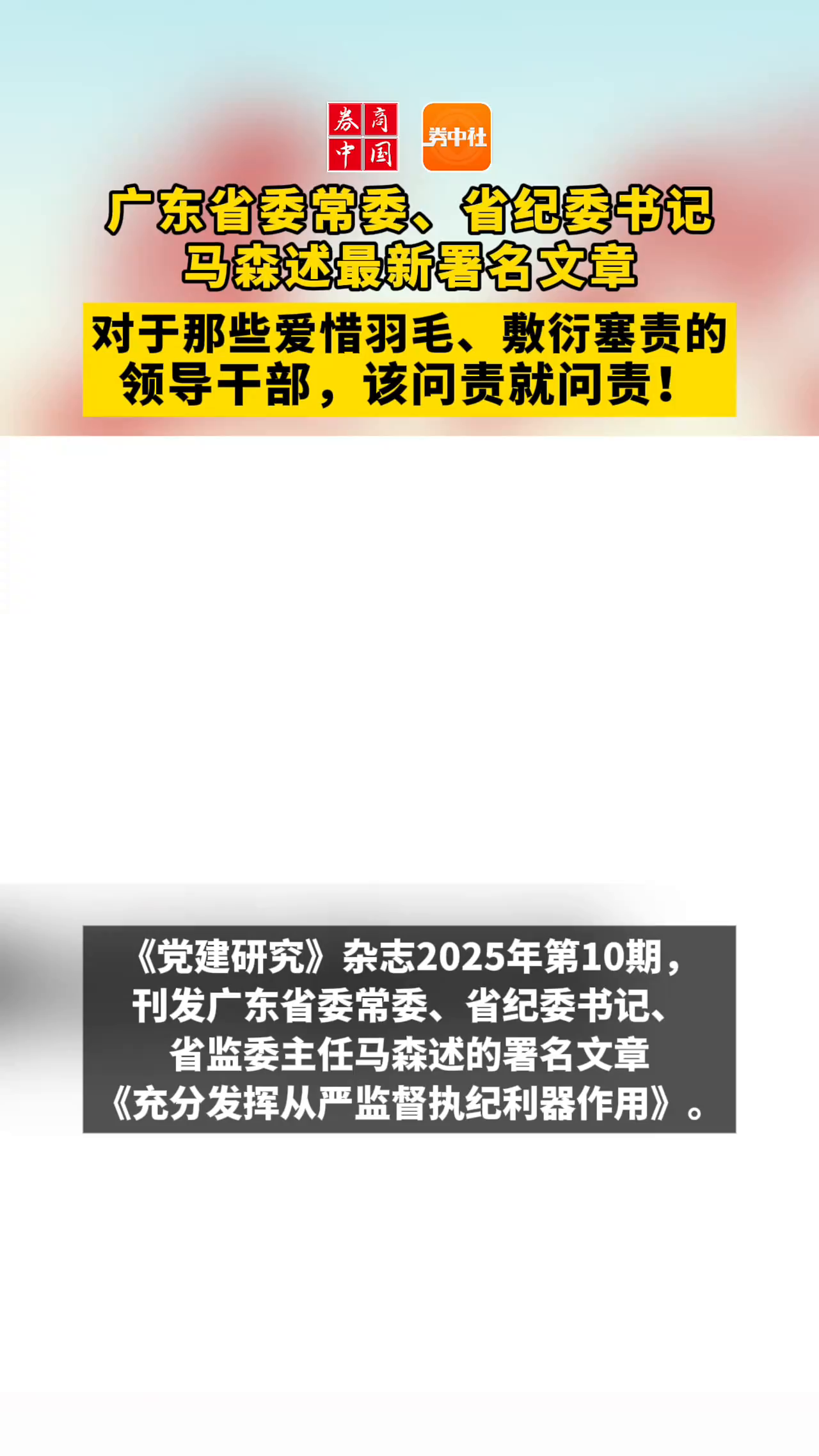 对于那些爱惜羽毛、敷衍塞责的领导干部,该问责就问责!广东省委常委、省纪委书记马森述最新署名文章
