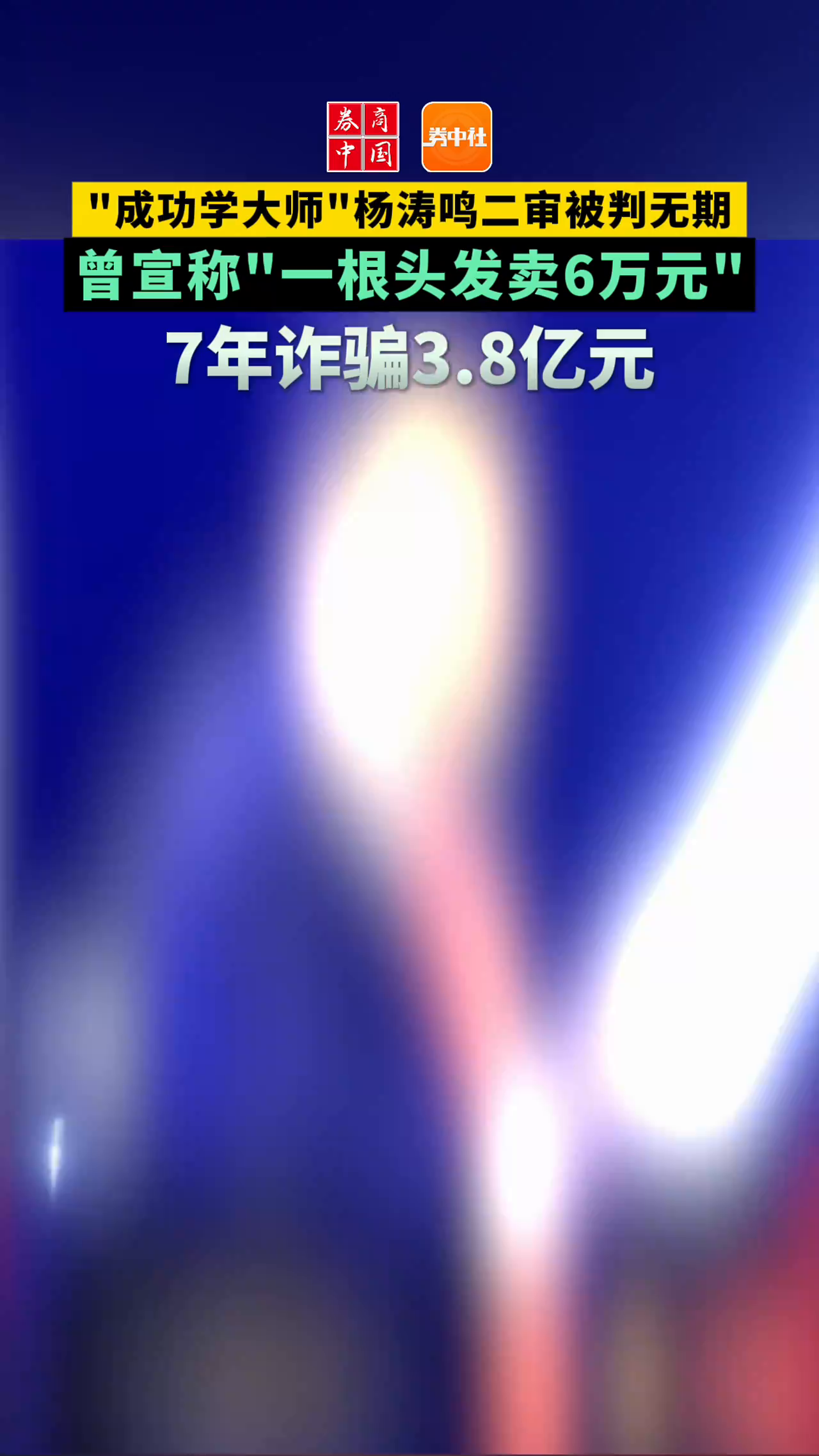 “成功学大师”杨涛鸣二审被判无期:7年诈骗3.8亿,曾宣称一根头发卖6万