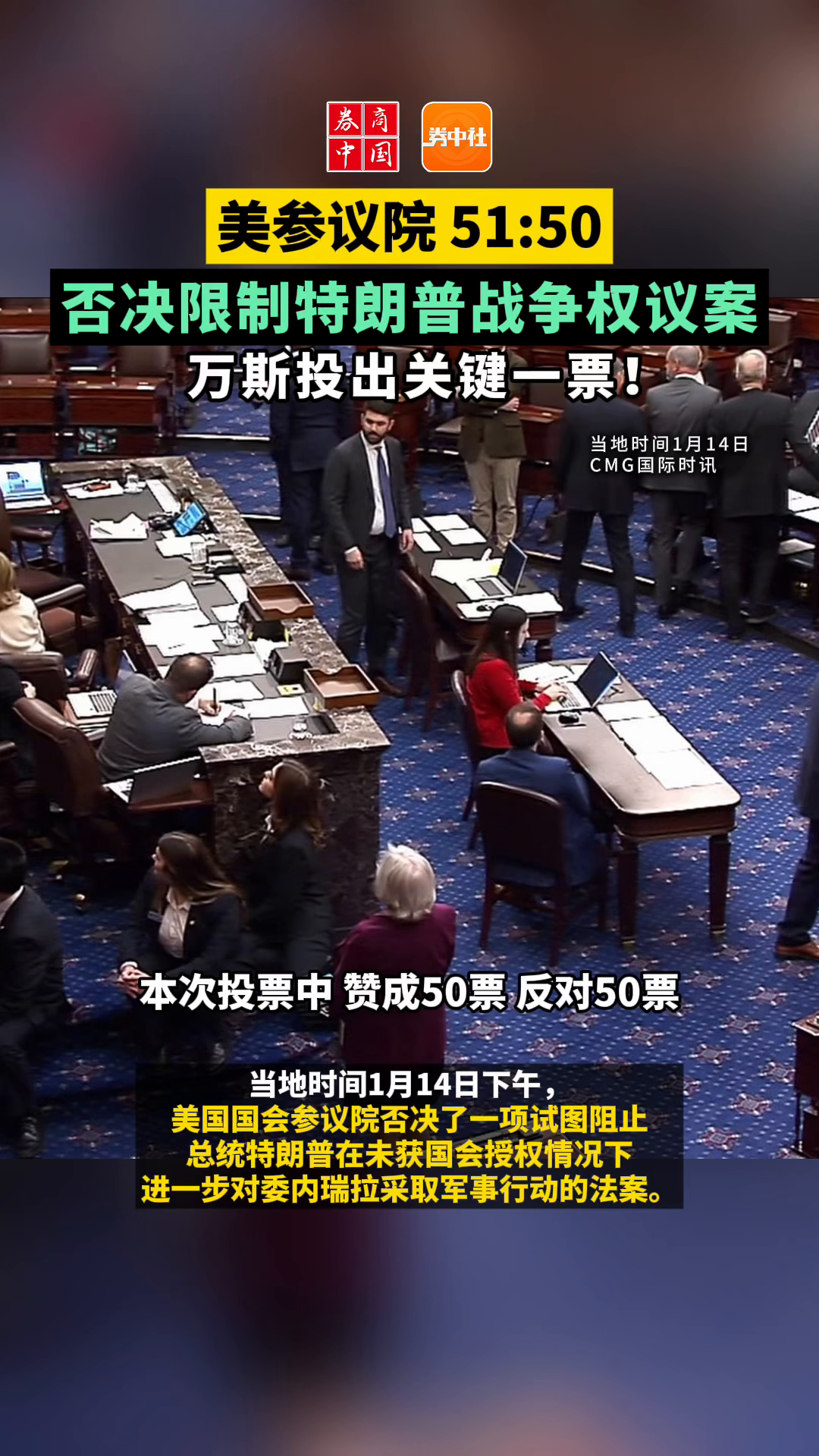 美参议院51:50 否决限制特朗普战争权议案 万斯投出关键一票!