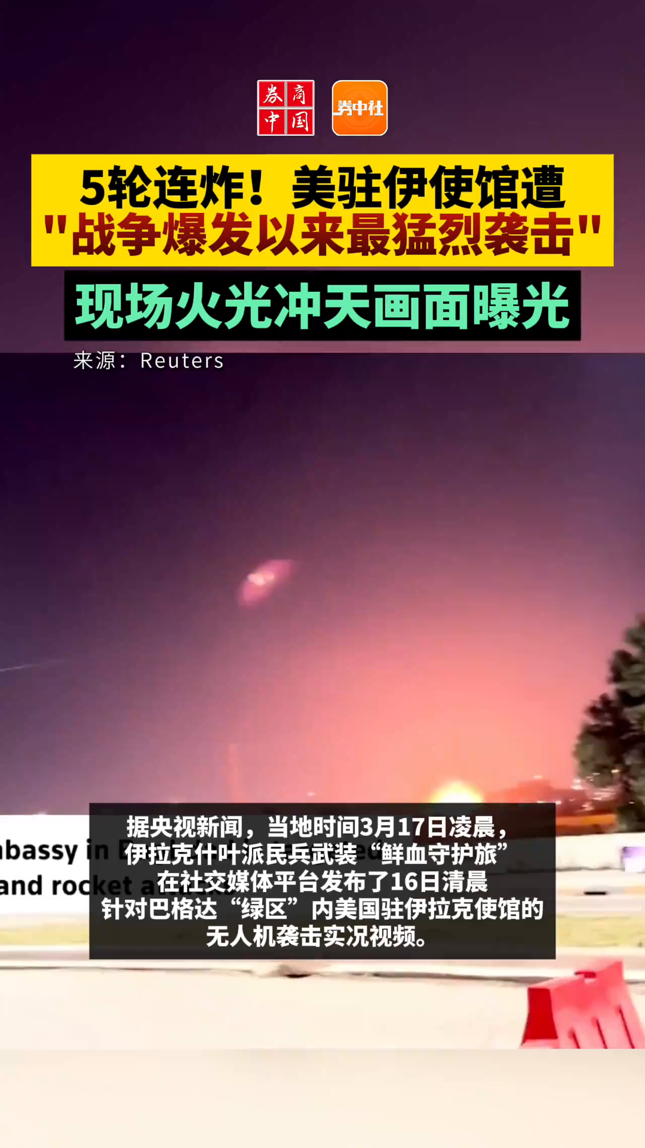 5轮连炸!美驻伊使馆遭"战争爆发以来最猛烈袭击" 现场火光冲天画面曝光