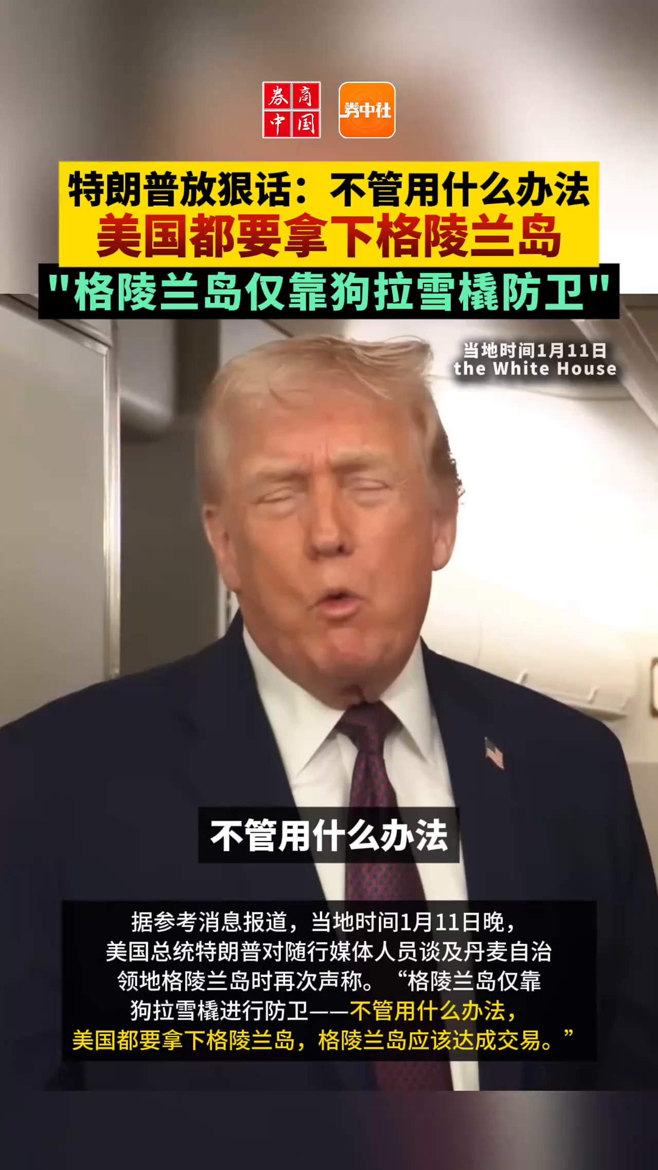 特朗普放狠话:不管用什么办法 美国都要拿下格陵兰岛