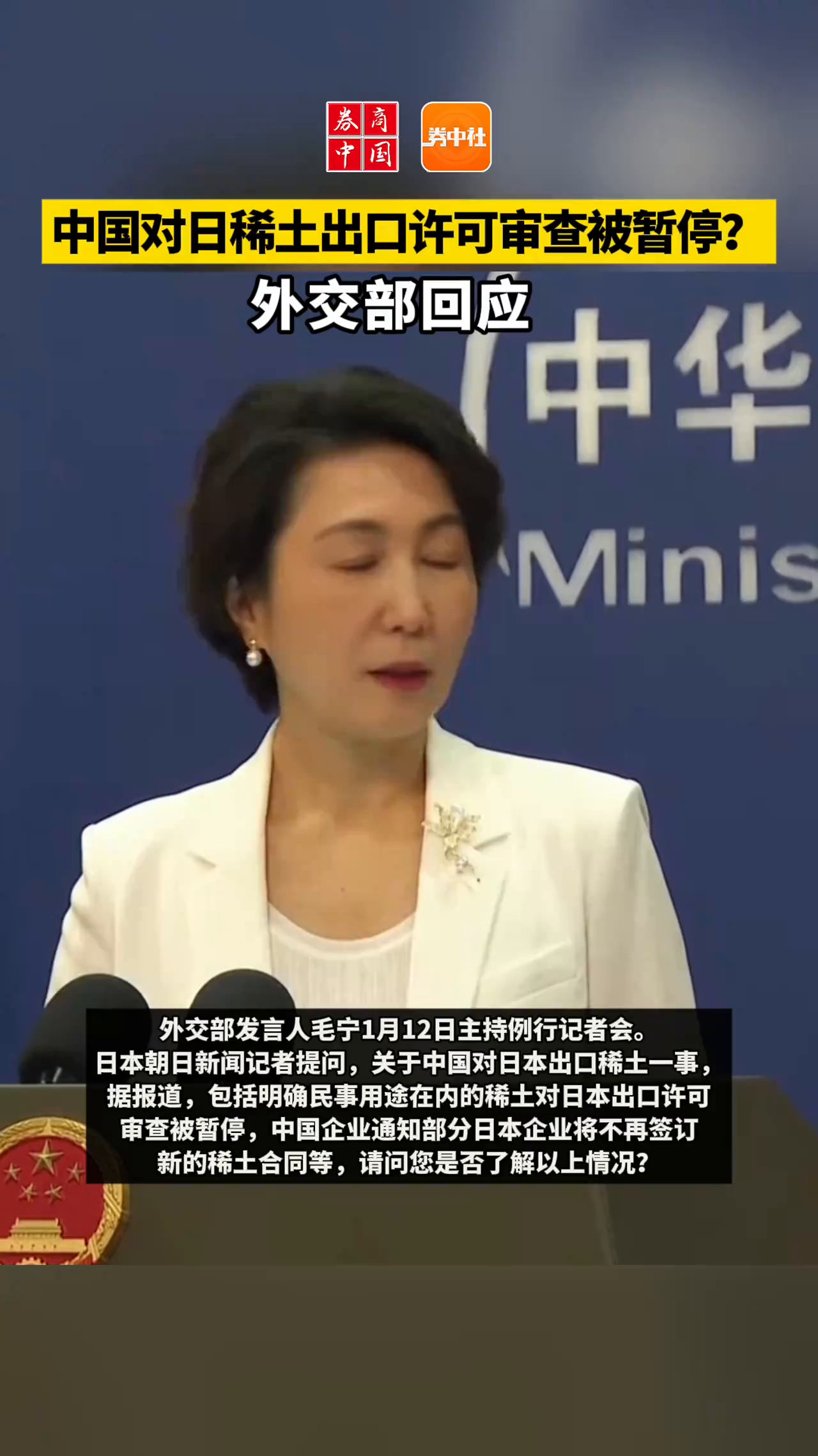 中国对日稀土出口许可审查被暂停?外交部回应