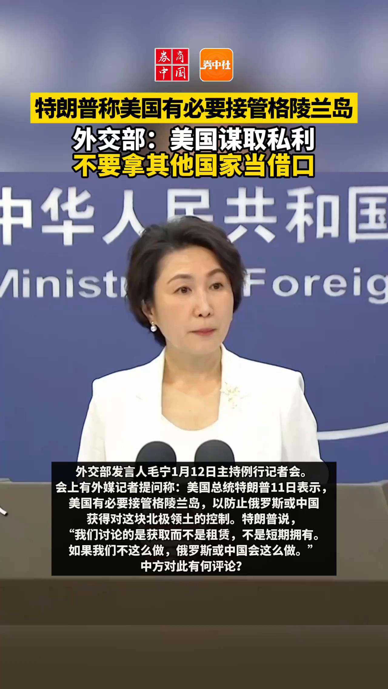 特朗普称美国有必要接管格陵兰岛,外交部:美国谋取私利,不要拿其他国家当借口