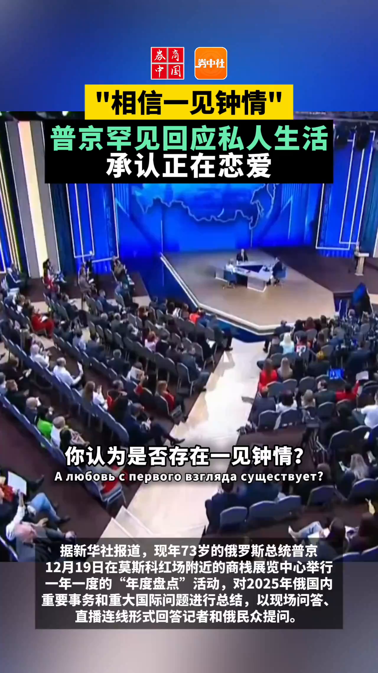 “相信一见钟情”!普京罕见回应私人生活,承认正在恋爱