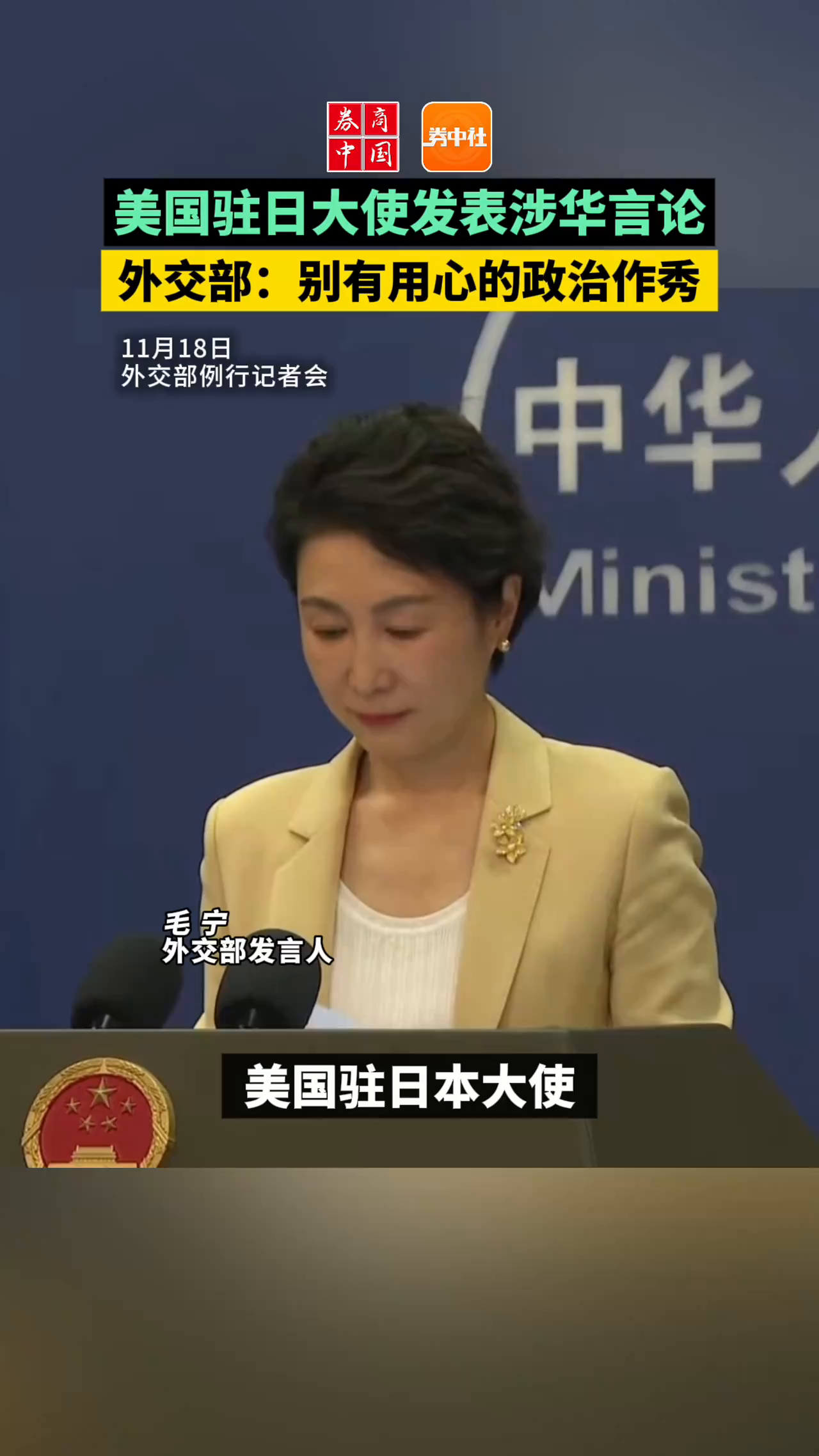 美国驻日大使发表涉华言论,外交部回应:别有用心的政治作秀