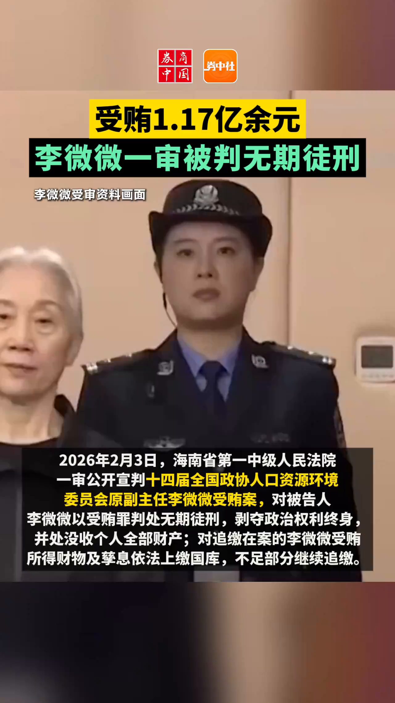 受贿1.17亿余元,李微微一审被判无期徒刑