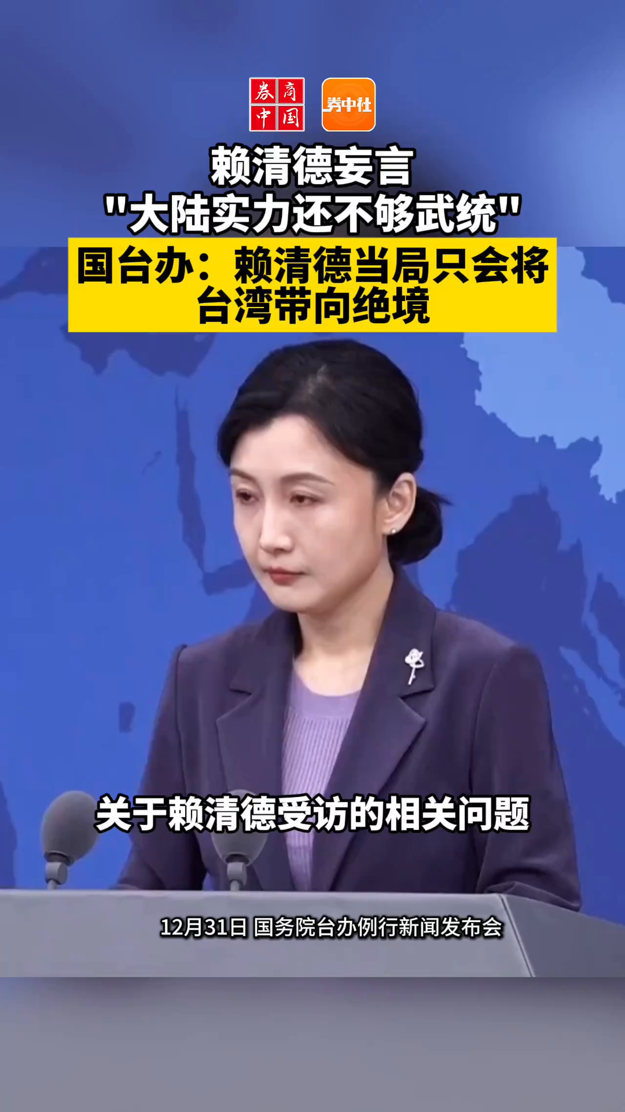 赖清德妄言“大陆实力还不够武统” 国台办:赖清德当局只会将台湾带向绝境