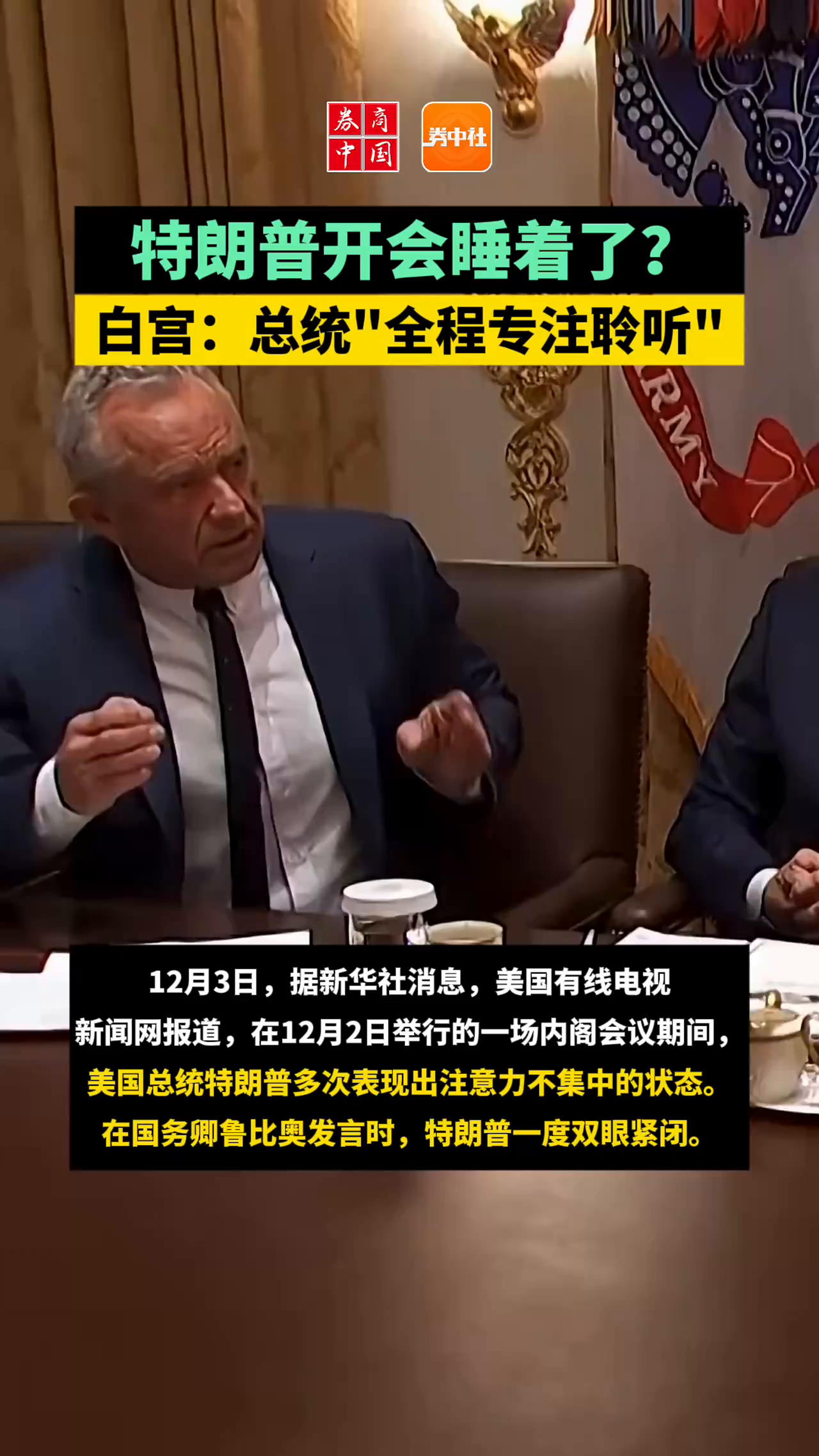 特朗普开会睡着了?白宫:总统“全程专注聆听”