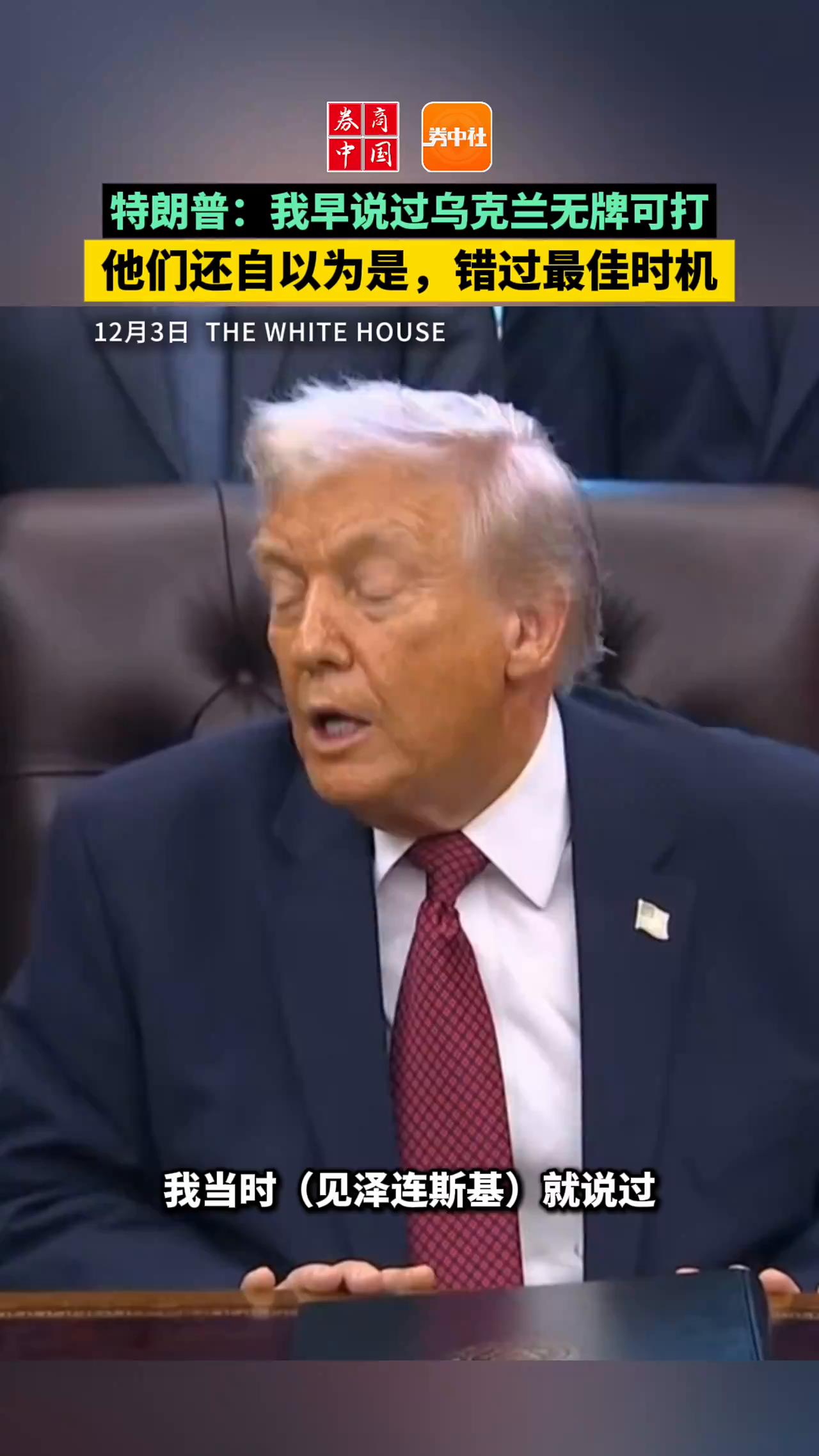 特朗普:我早就说乌克兰无牌可打,他们还自以为是,白白错过最佳时机