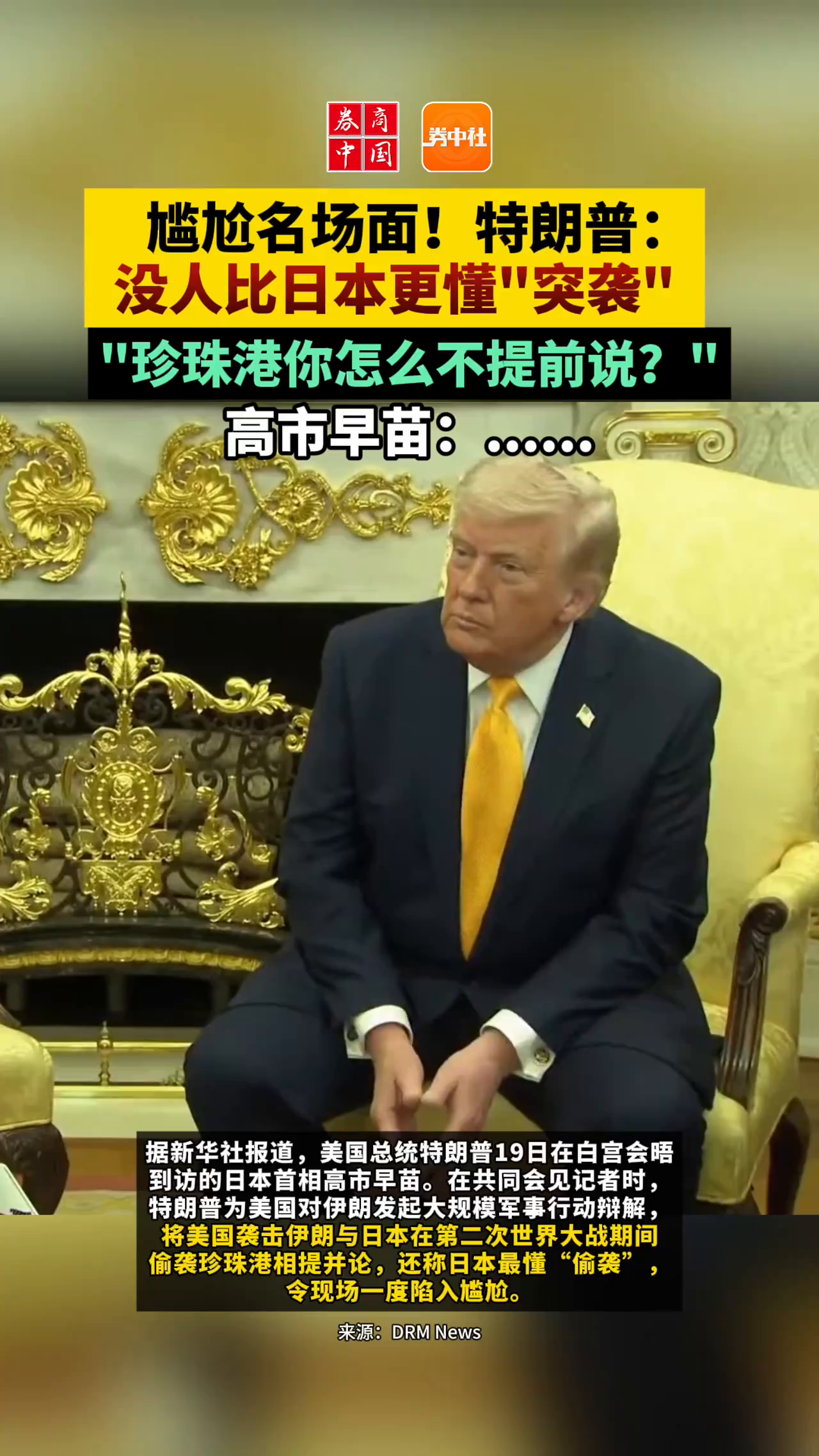 特朗普:没人比日本更懂突袭 珍珠港你怎么不提前说?高市早苗:......
