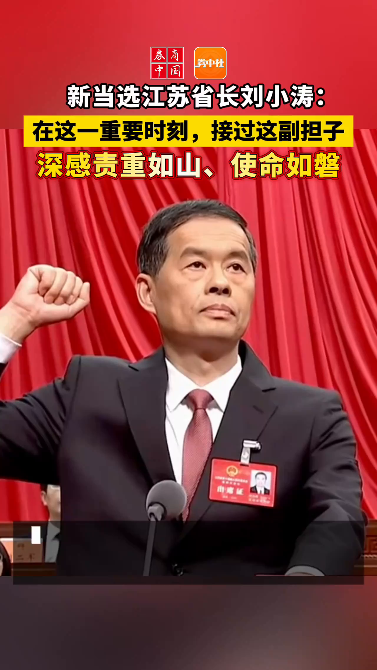 新当选江苏省长刘小涛:在这一重要时刻,接过这副担子,深感责重如山、使命如磐