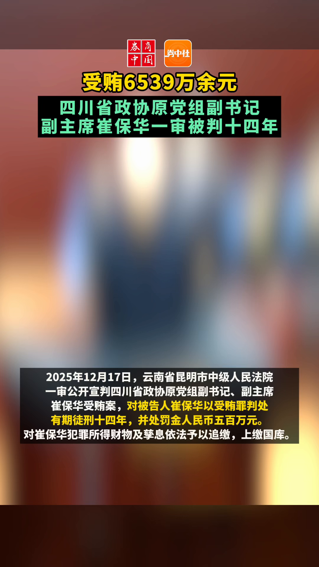 受贿6539万余元 四川省政协原党组副书记副主席崔保华一审被判十四年