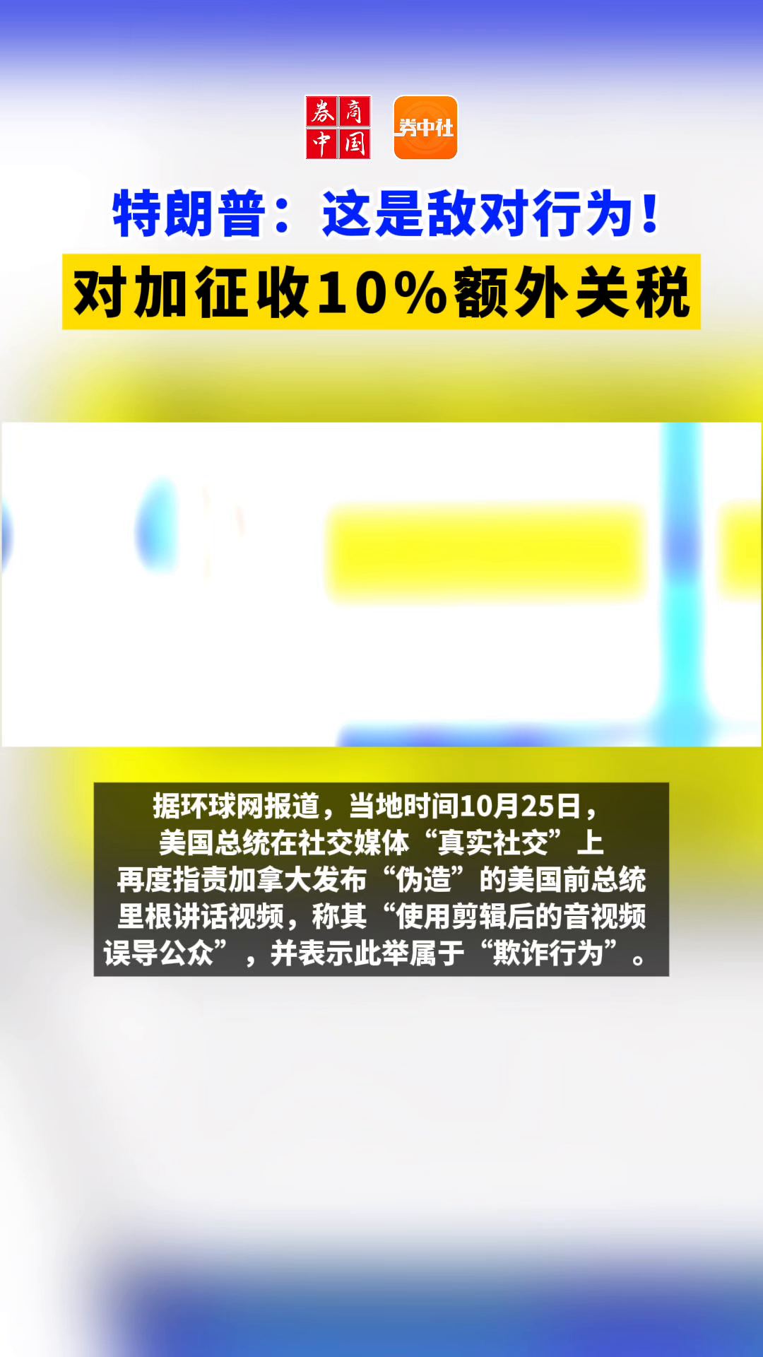 特朗普:这是敌对行为!对加征收10%额外关税