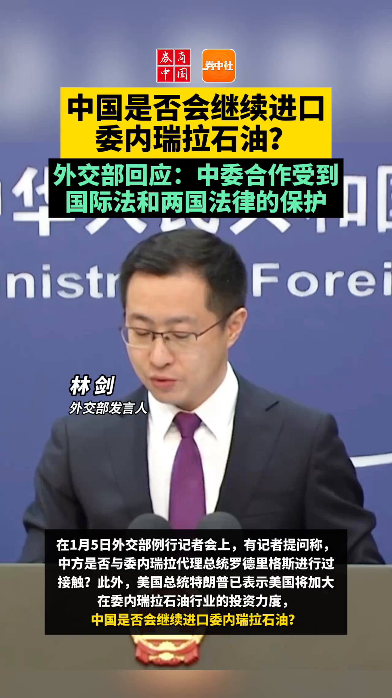 中国是否会继续进口委内瑞拉石油?外交部回应:中委合作受到国际法和两国法律的保护