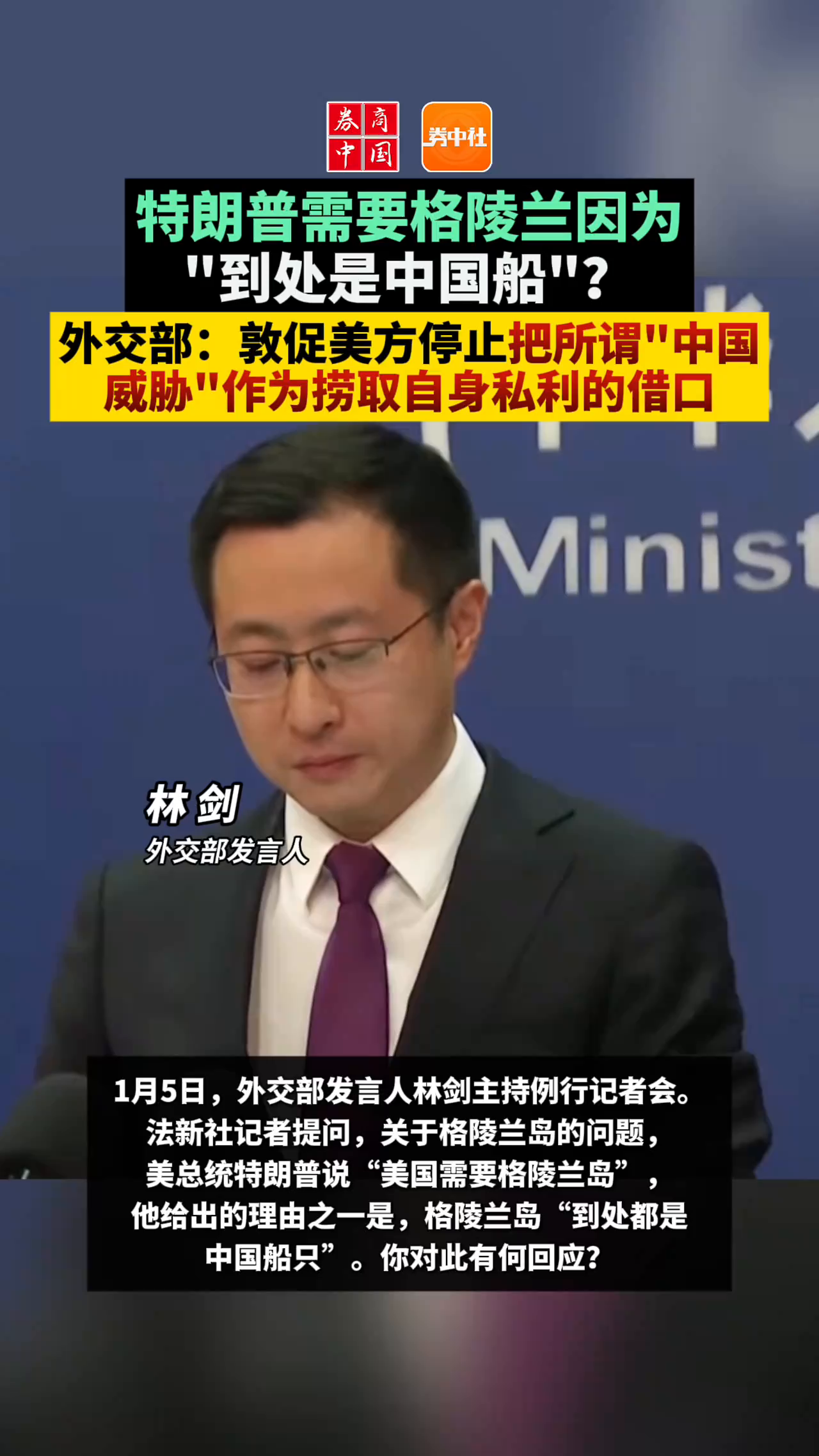 特朗普需要格陵兰因为"到处是中国船"?外交部:敦促美方停止把所谓"中国威胁"作为捞取自身私利的借口
