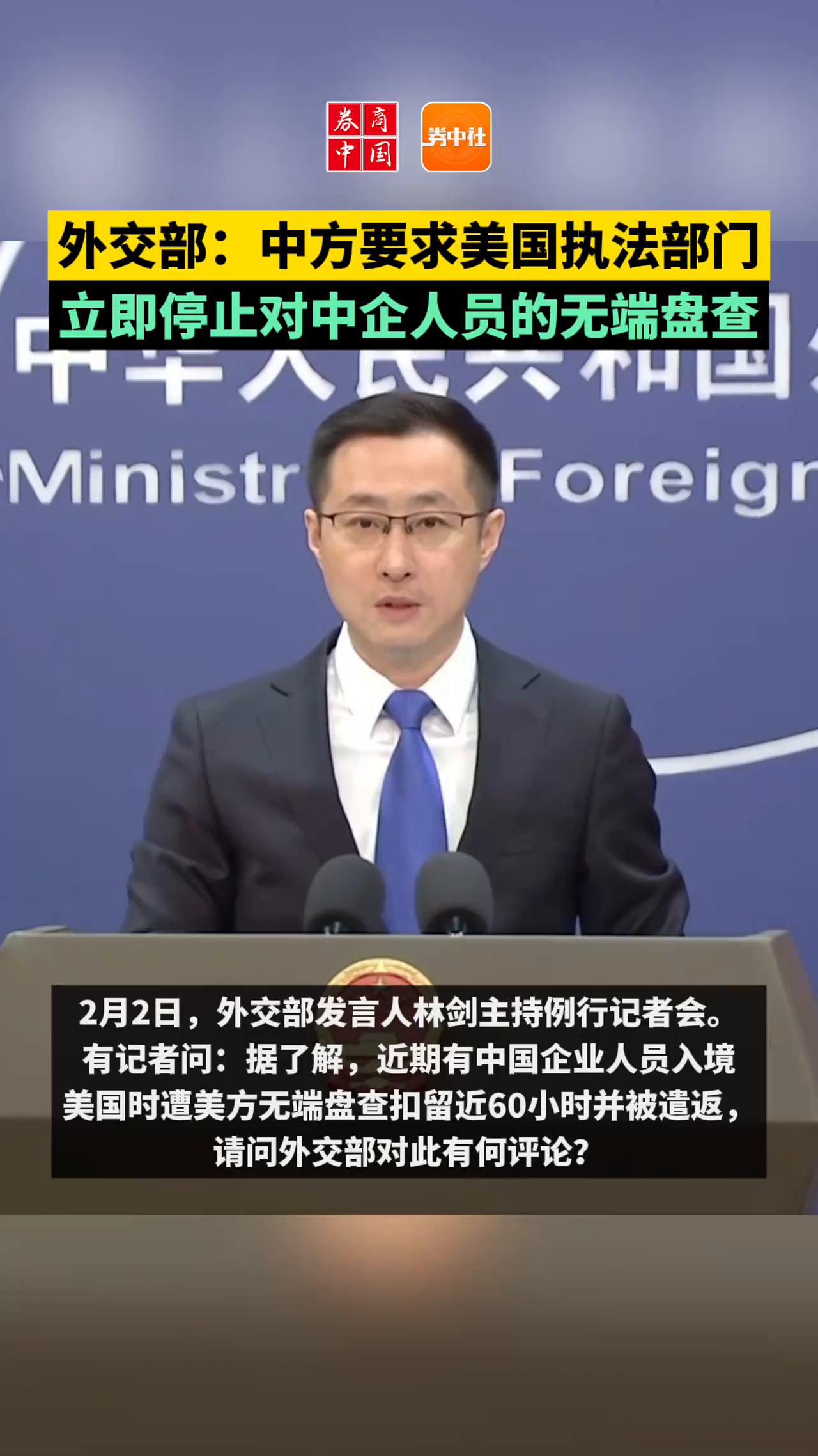 外交部:中方要求美国执法部门立即停止对中企人员的无端盘查