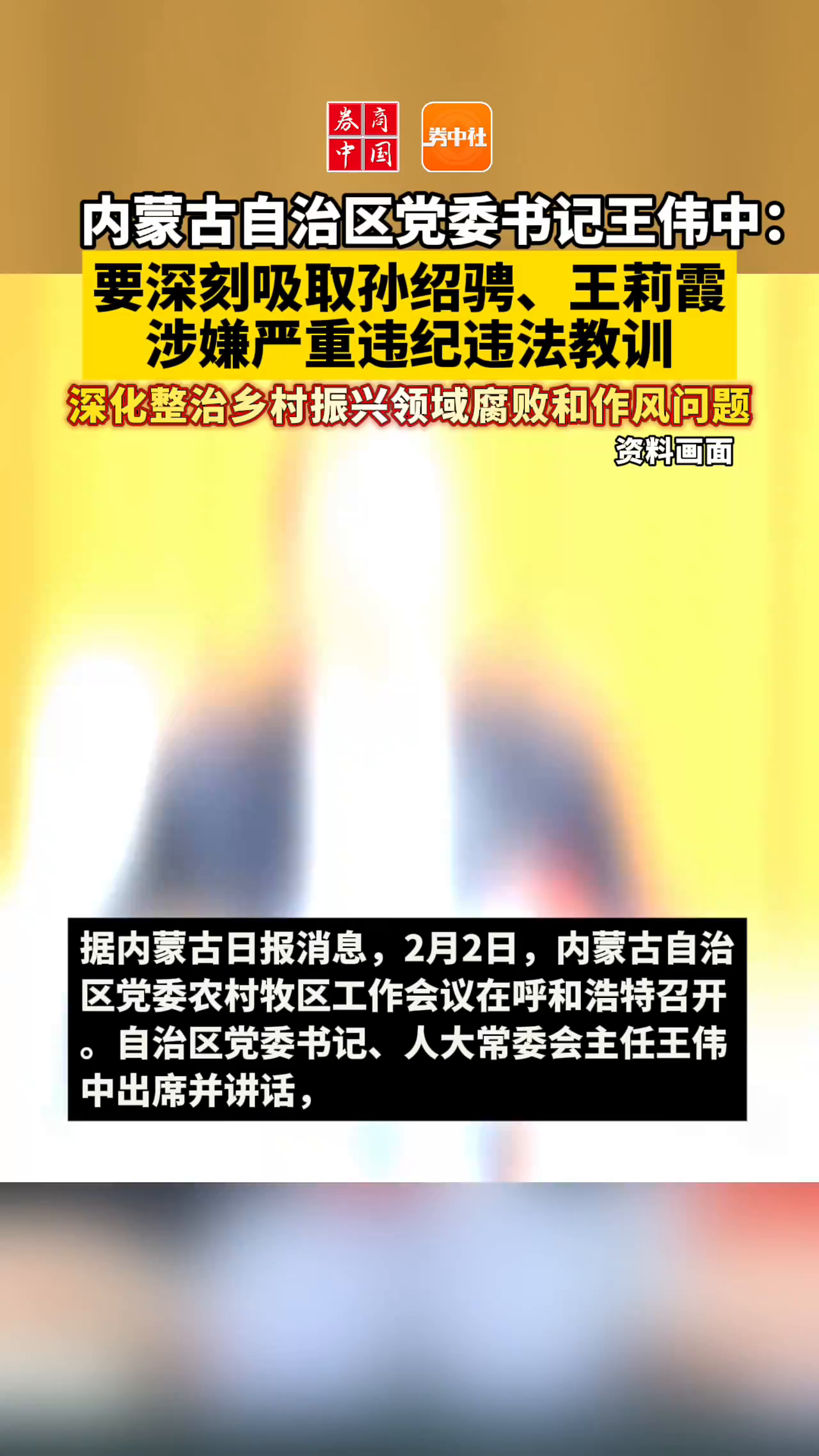 内蒙古自治区党委书记王伟中:要深刻吸取孙绍骋、王莉霞涉嫌严重违纪违法教训