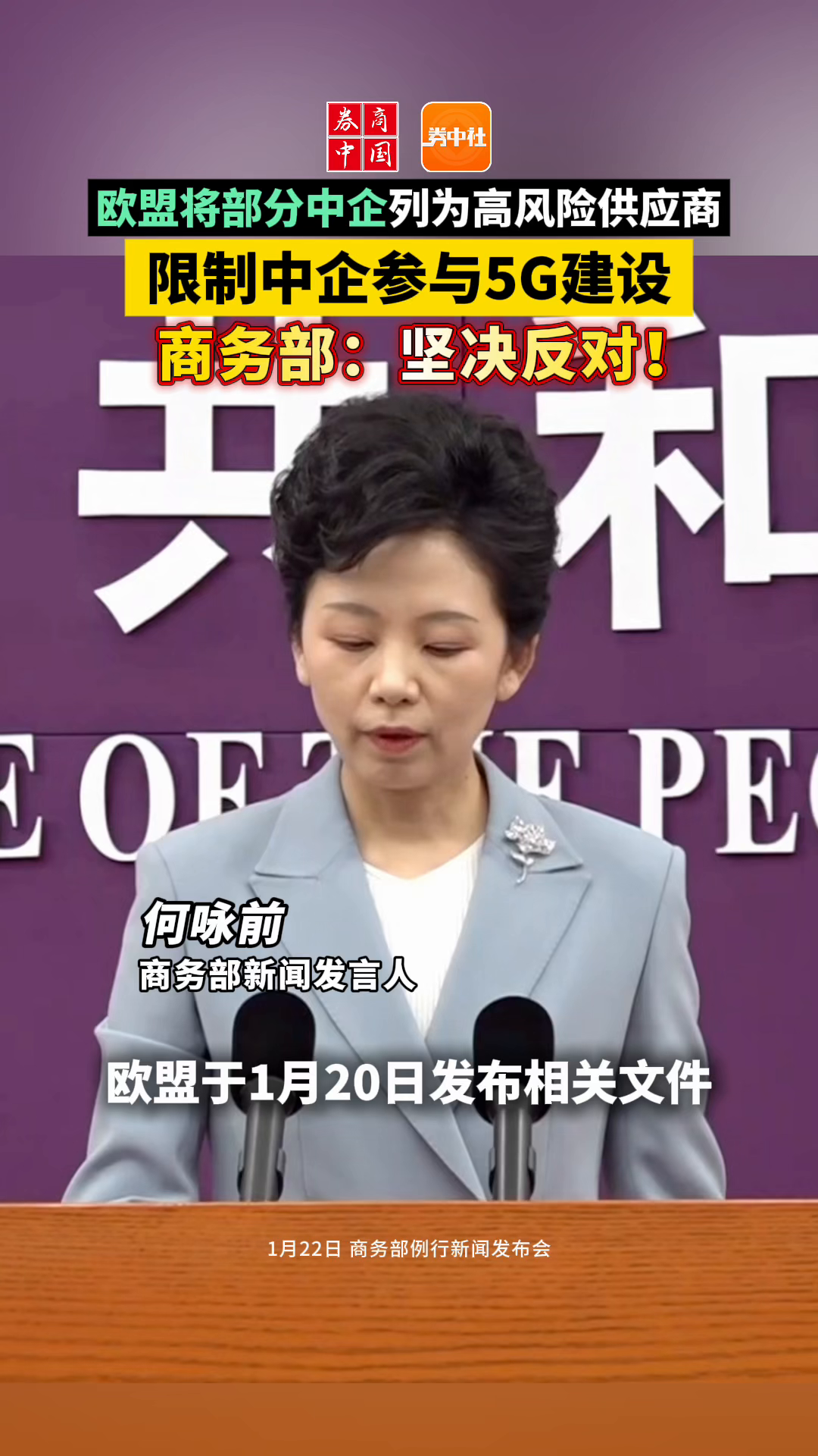 欧盟将部分中企列为高风险供应商,限制中企参与5G建设,商务部:坚决反对!
