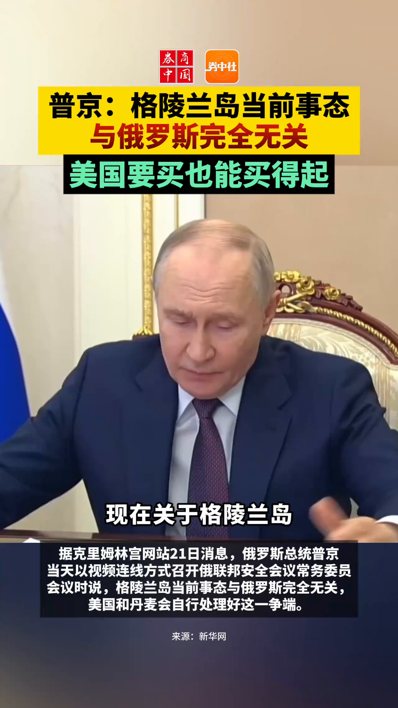 普京:格陵兰岛与俄罗斯无关,美国有能力“购买”格陵兰岛