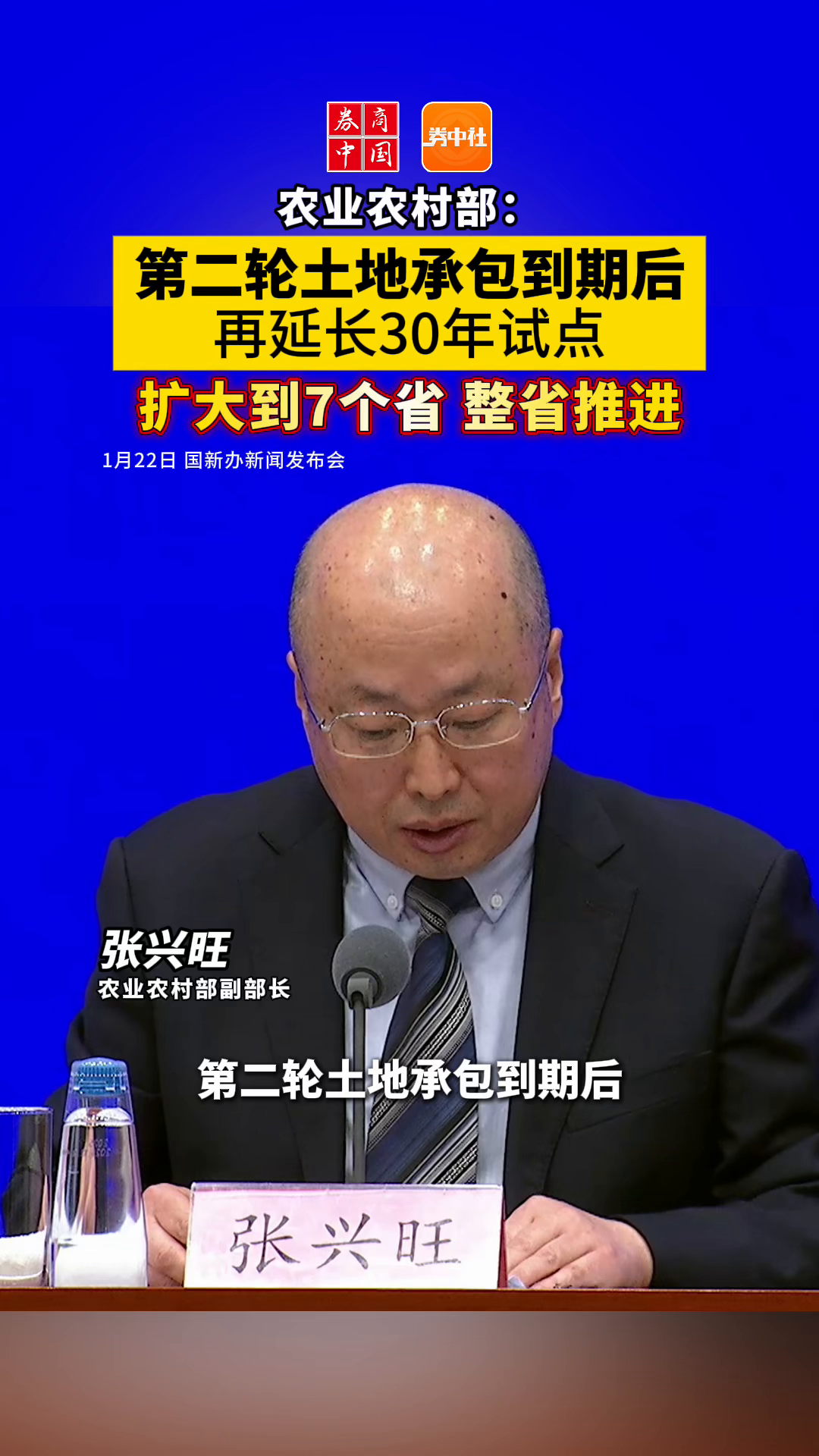 农业农村部:第二轮土地承包到期后再延长30年试点扩大到7个省整省推进