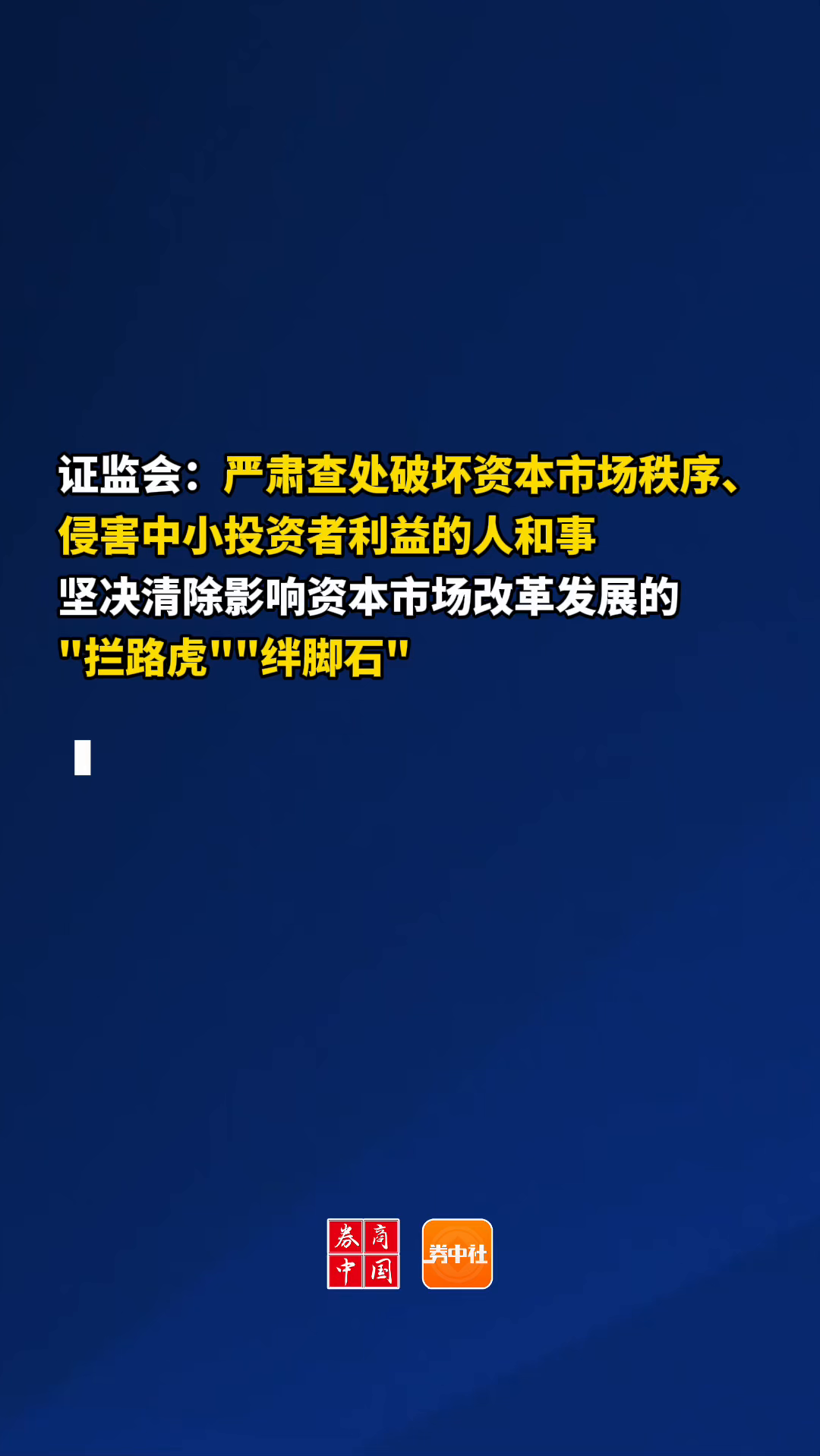证监会:严肃查处破坏资本市场秩序、侵害中小投资者利益的人和事 坚决清除影响资本市场改革发展的“拦路虎”“绊脚石”