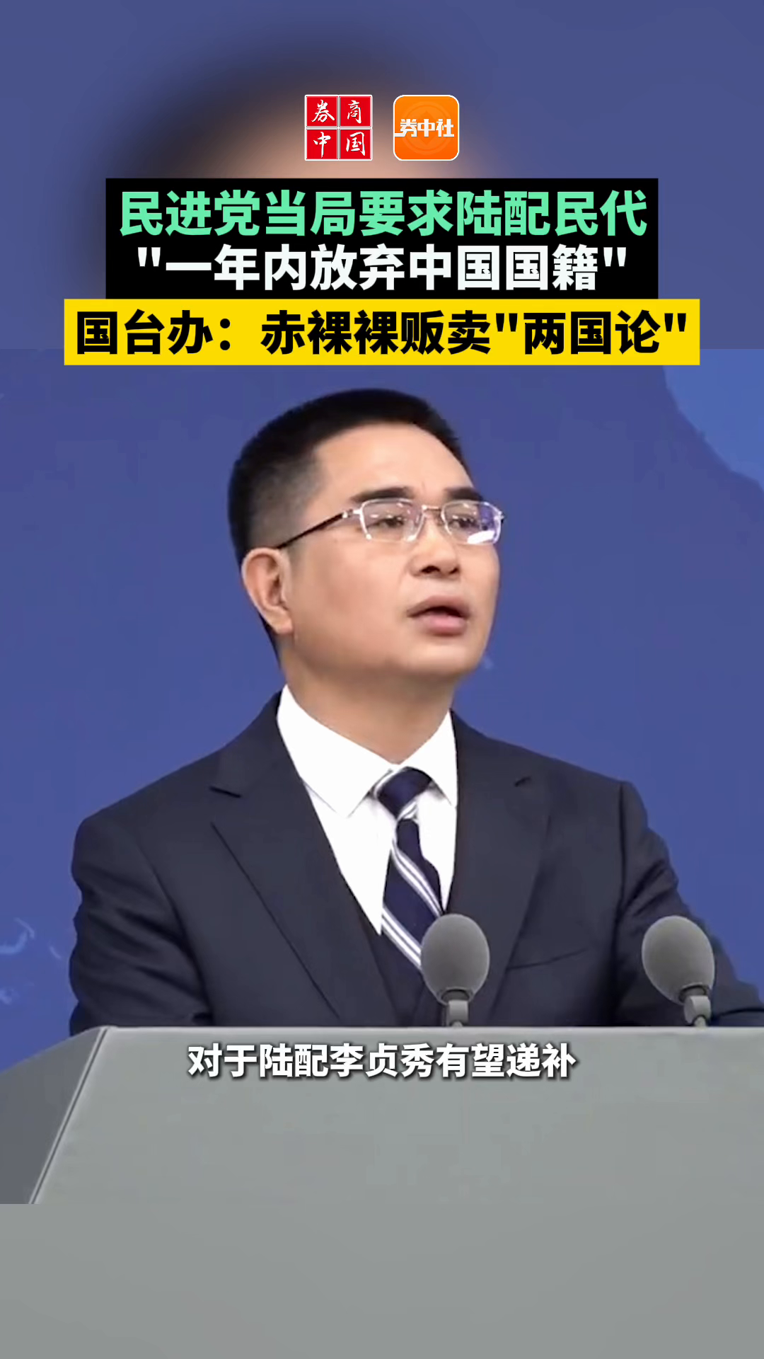 民进党当局要求陆配民代“一年内放弃中国国籍” 国台办:赤裸裸贩卖“两国论”