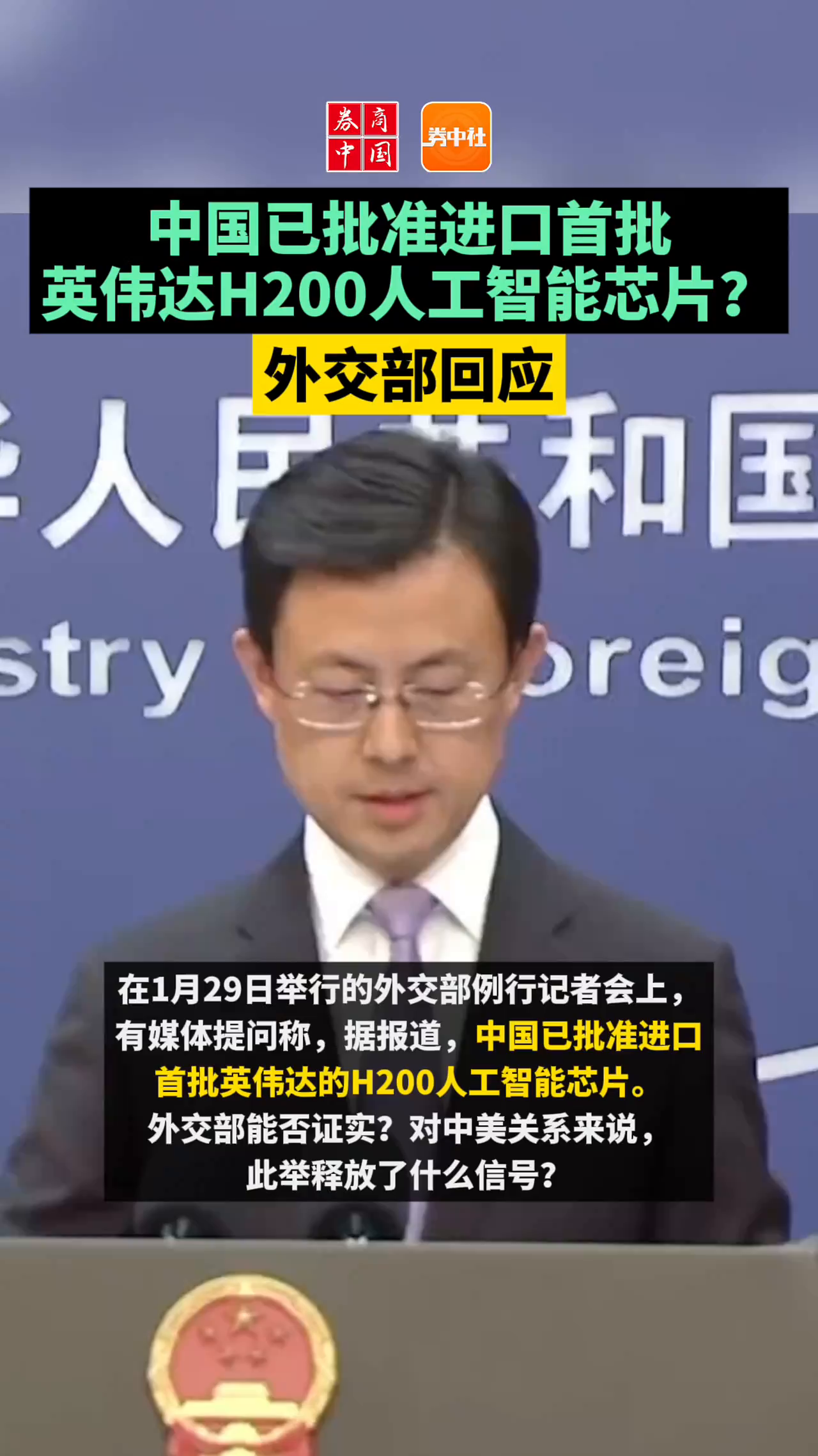中国已批准进口首批英伟达H200人工智能芯片?外交部回应