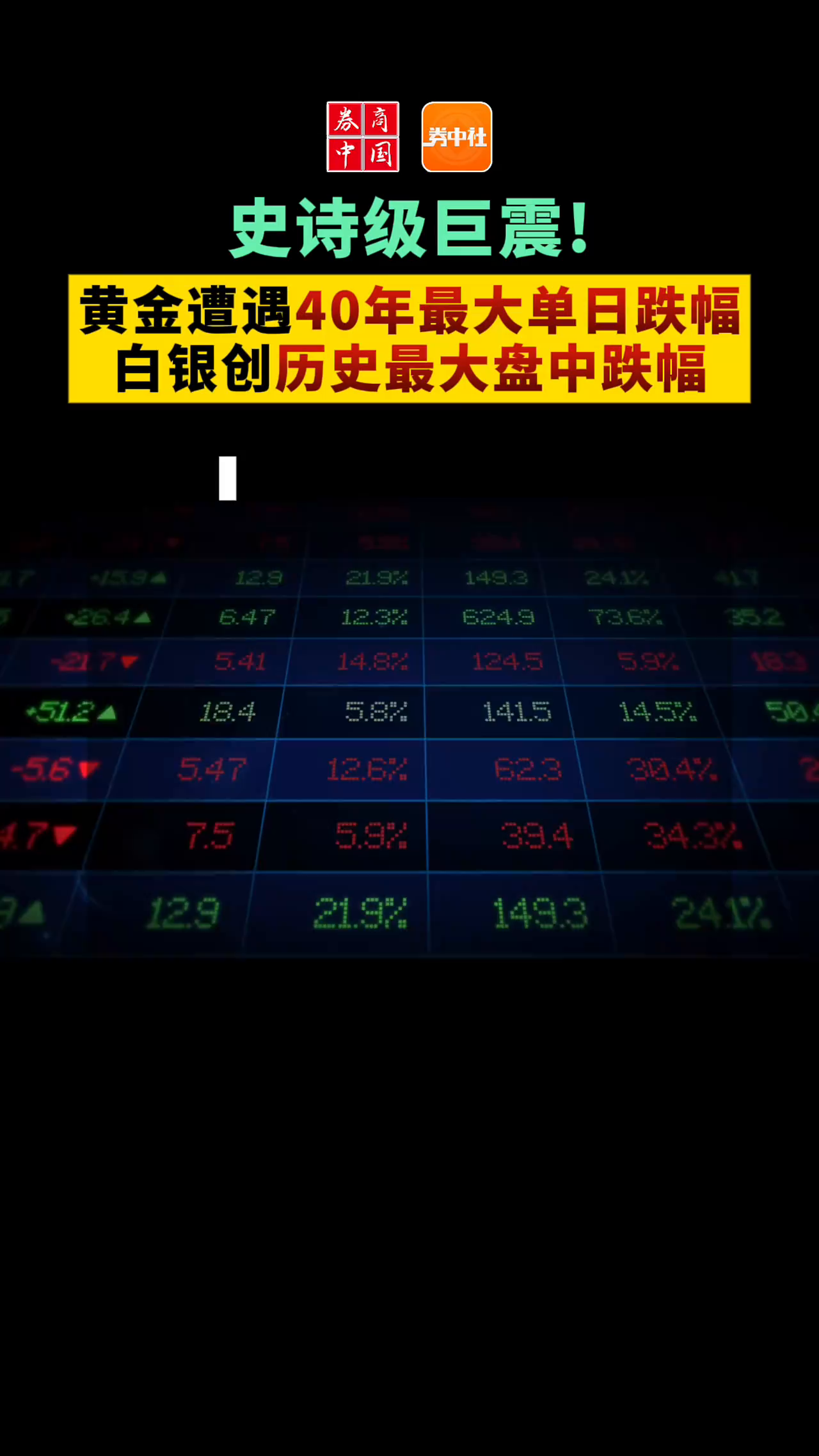 史诗级巨震!黄金遭遇40年最大单日跌幅 白银创历史最大盘中跌幅