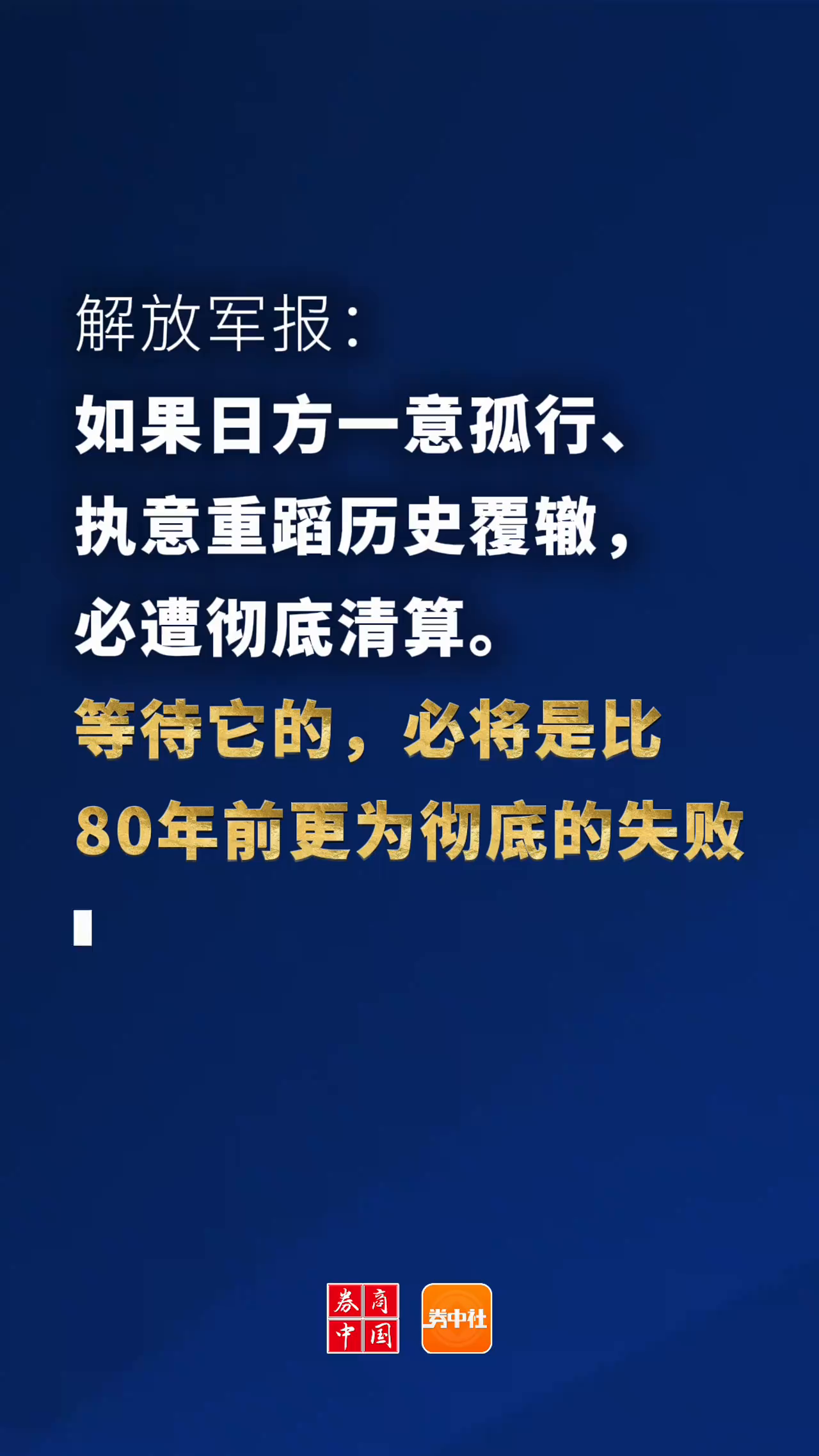 解放军报再批高市早苗:日本若执意重蹈历史覆辙必遭彻底清算
