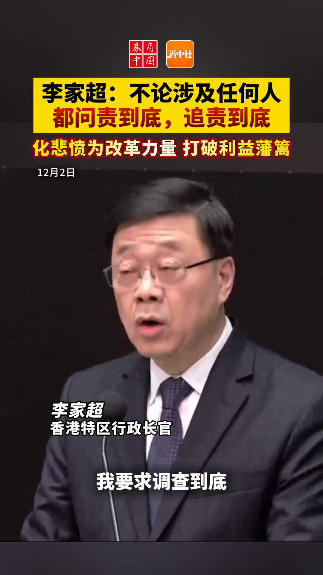 李家超:不论涉及任何人都问责到底,追责到底