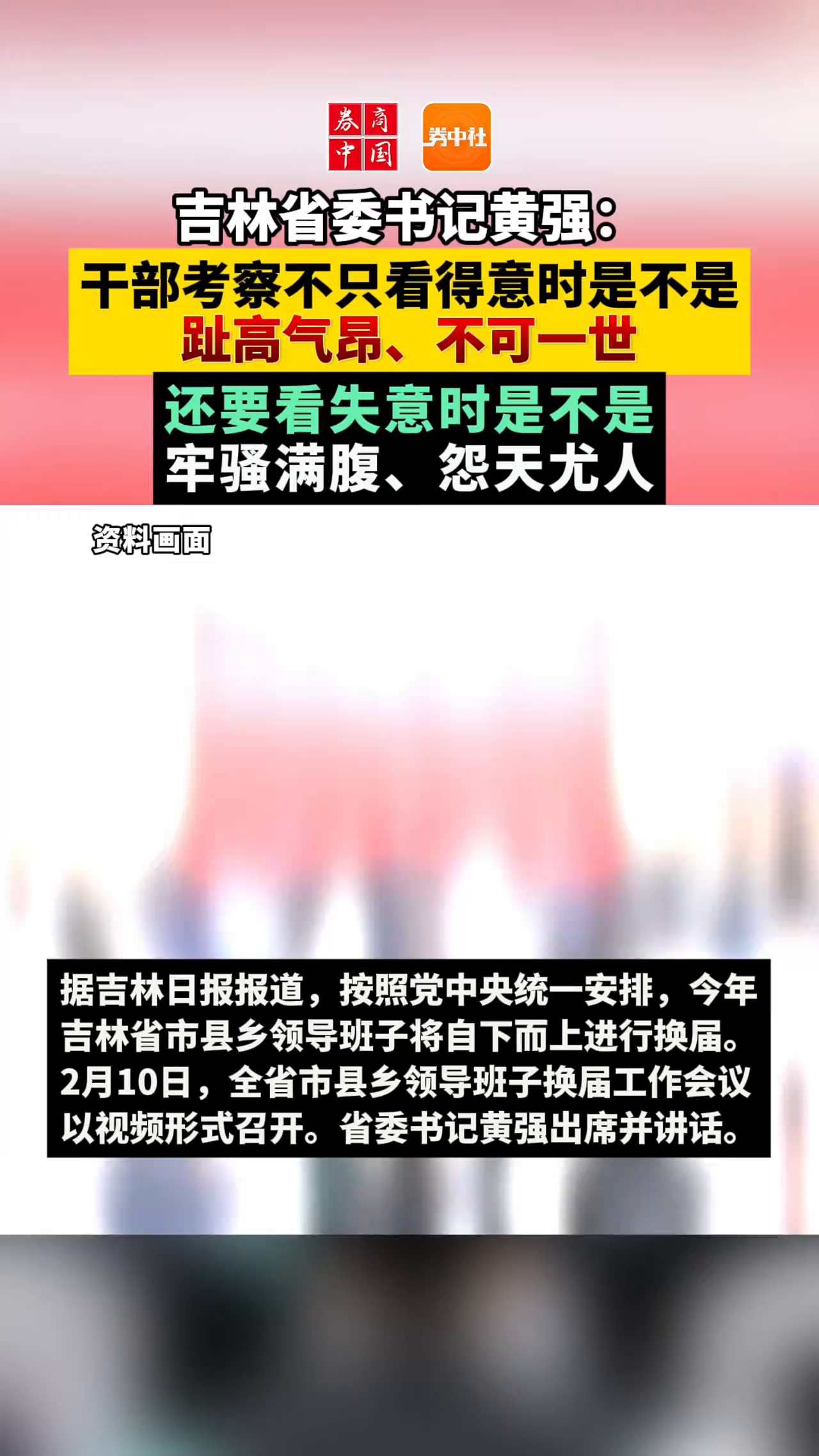 吉林省委书记黄强:干部考察不只看得意时是不是趾高气昂、不可一世 还要看失意时是不是牢骚满腹、怨天尤人