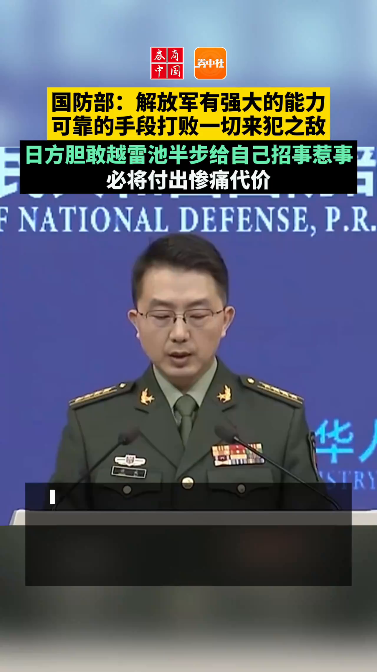 国防部:解放军有强大的能力、可靠的手段打败一切来犯之敌 日方胆敢越雷池半步给自己招事惹事 必将付出惨痛代价