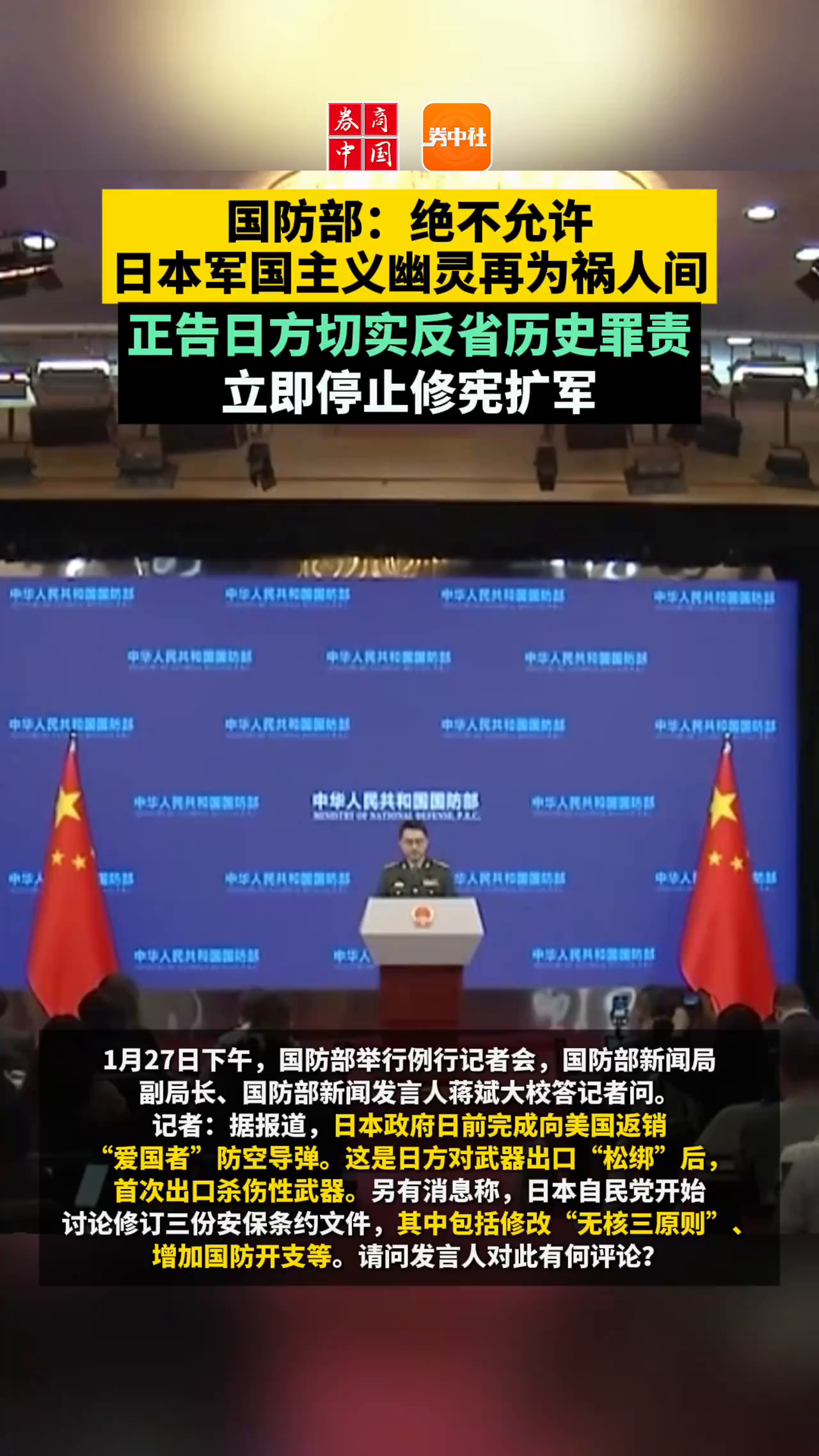 国防部:绝不允许日本军国主义幽灵再为祸人间