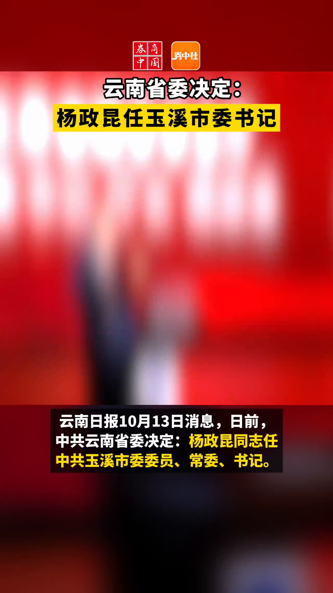 云南省委决定:杨政昆任玉溪市委书记