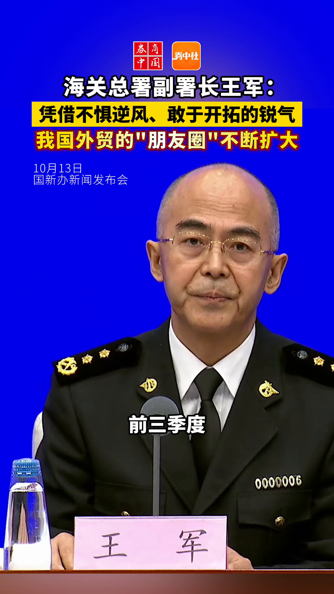 海关总署副署长王军:凭借不惧逆风、敢于开拓的锐气,我国外贸的“朋友圈”不断扩大