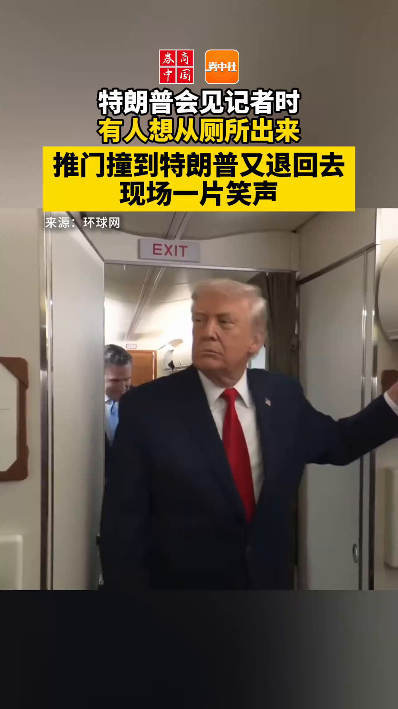 特朗普会见记者时有人想从厕所出来,推门撞到特朗普又退回去