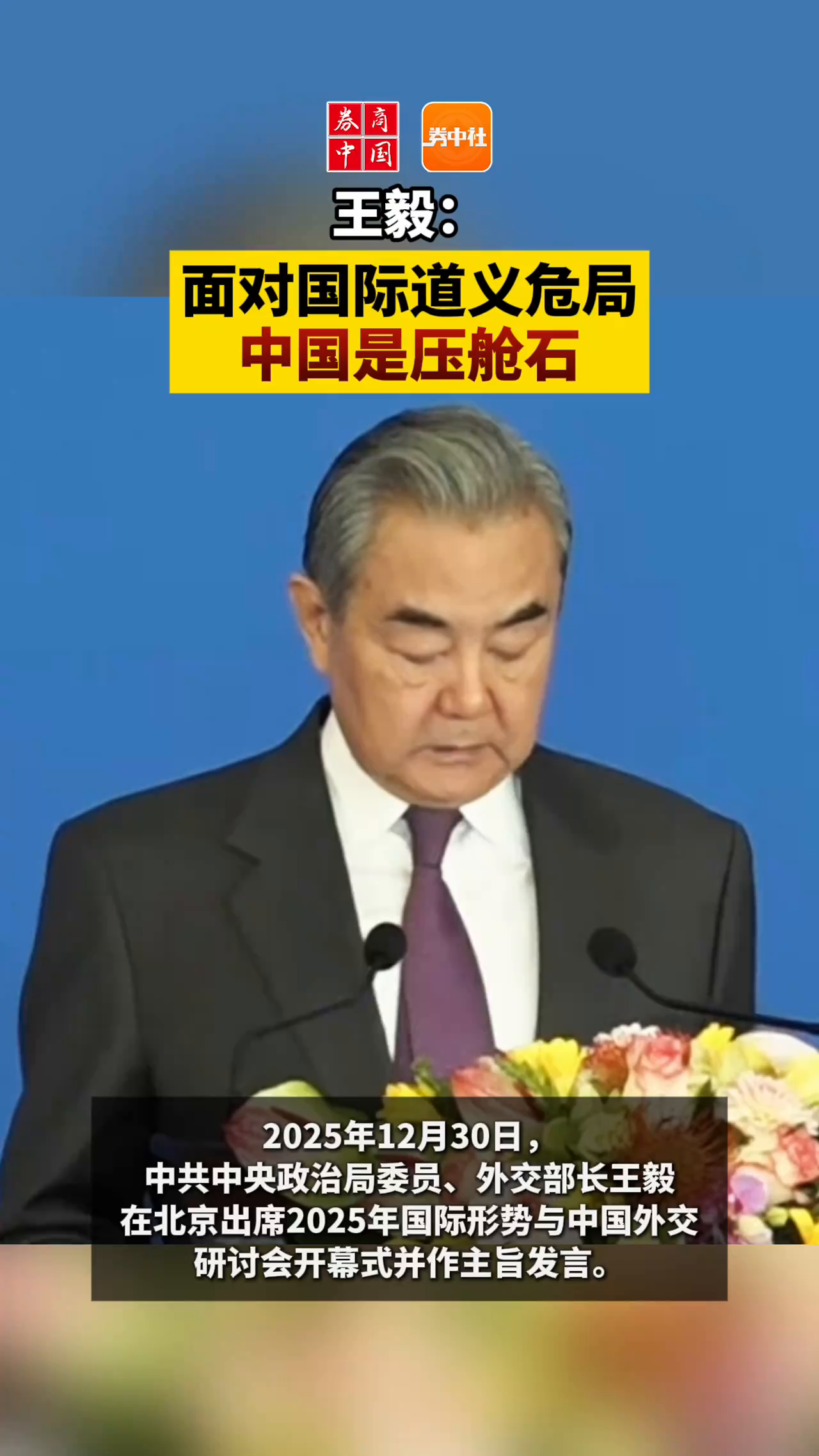 王毅:面对国际道义危局 中国是压舱石