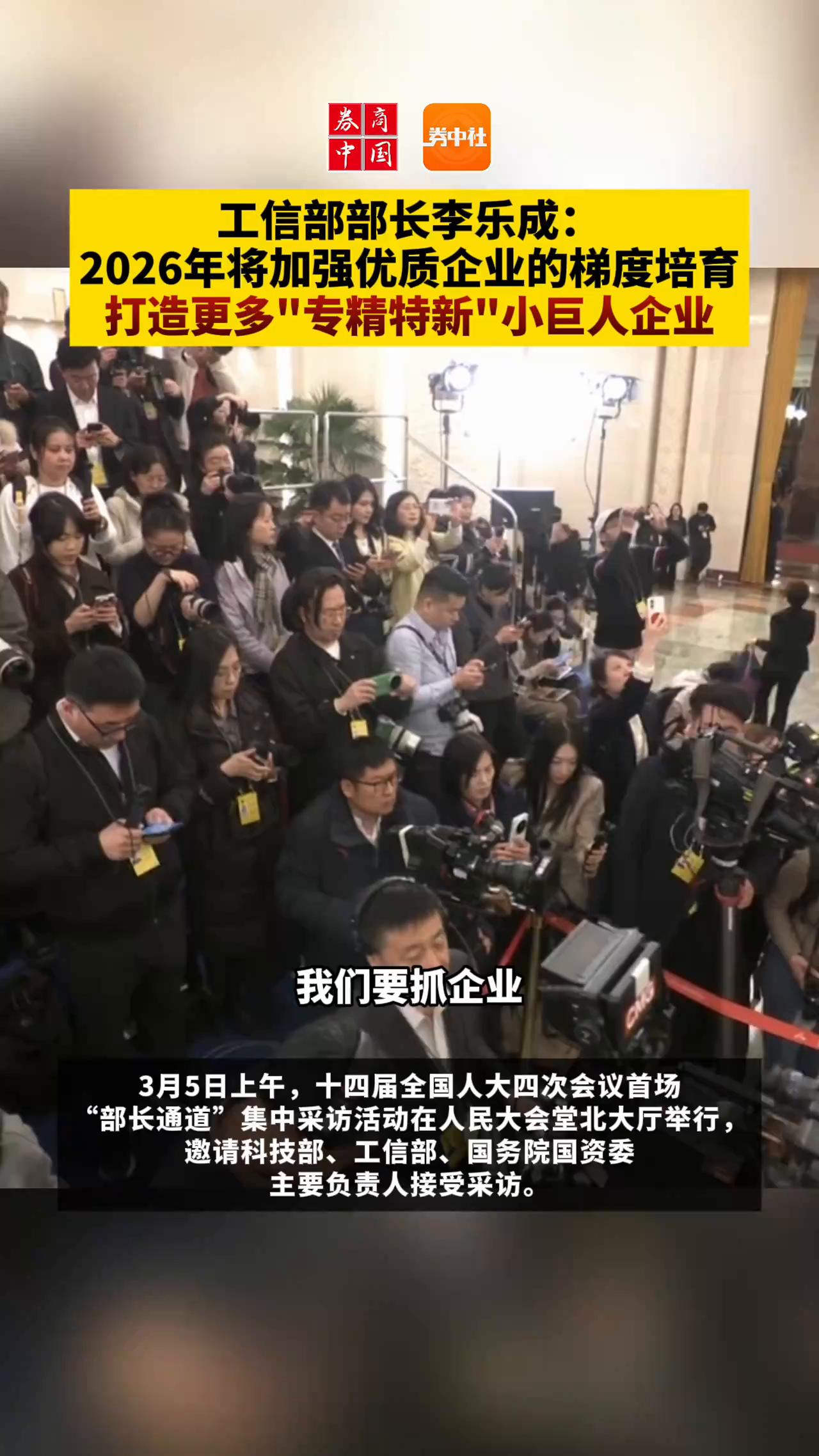 工信部部长李乐成:2026年将加强优质企业的梯度培育 打造更多“专精特新”小巨人企业